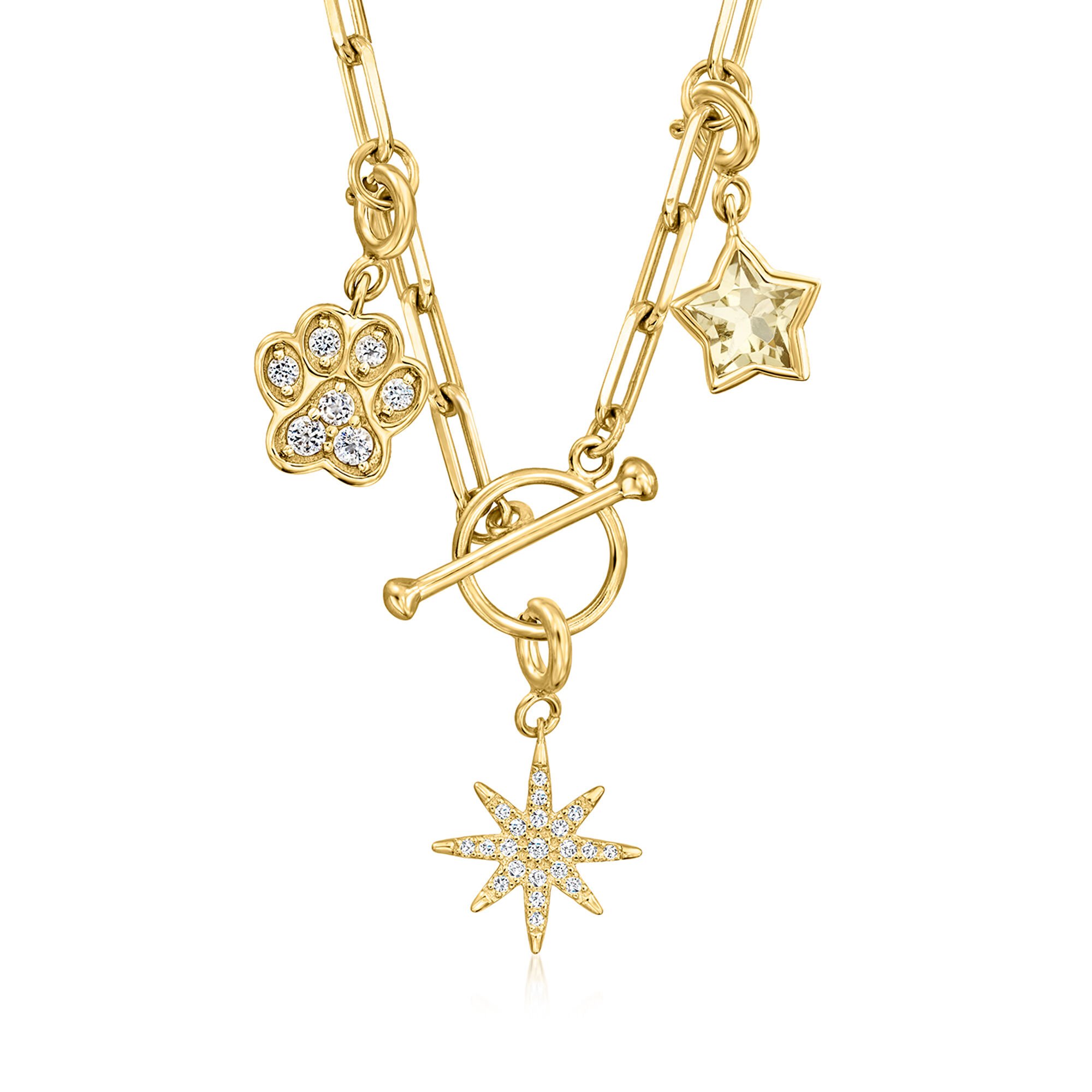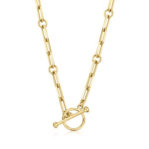 18kt Gold Over Sterling Charm-Compatible Paper Clip Link Toggle Necklace