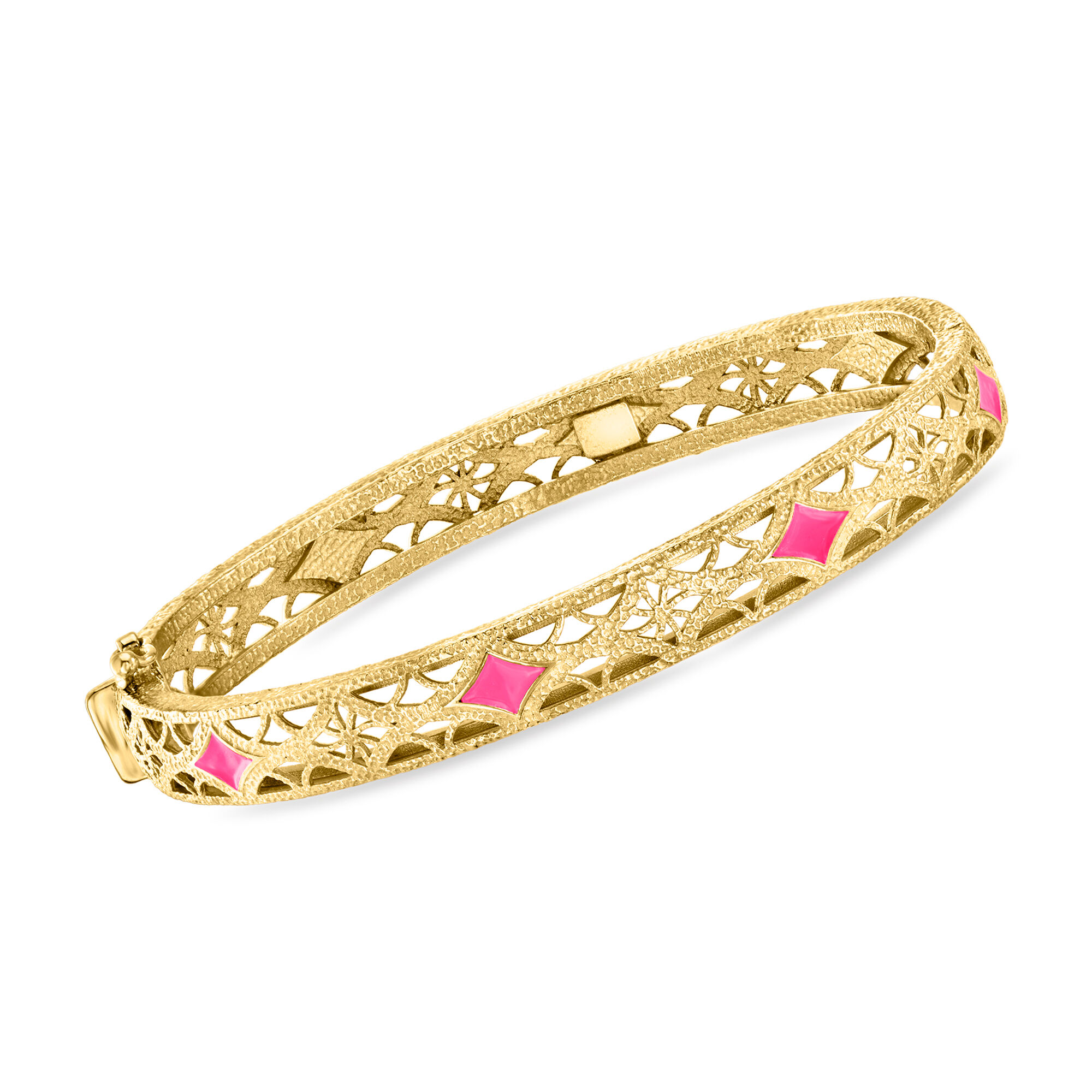 18kt Gold Over Sterling Filigree Bangle Bracelet with Pink Enamel