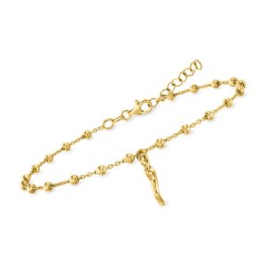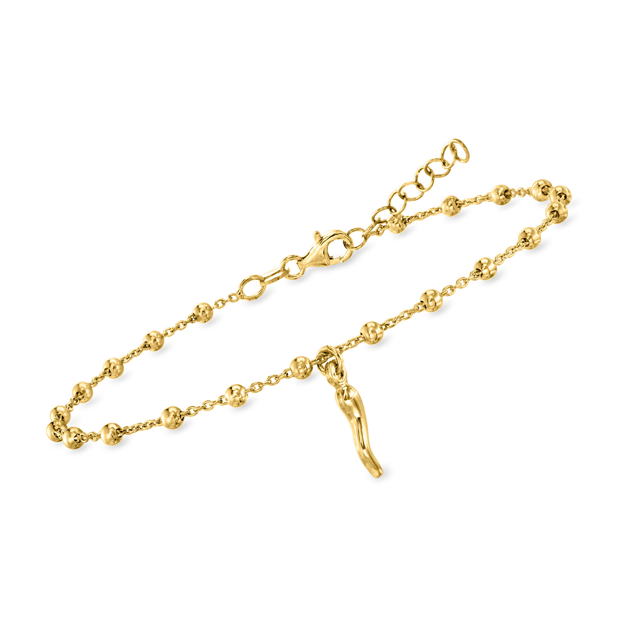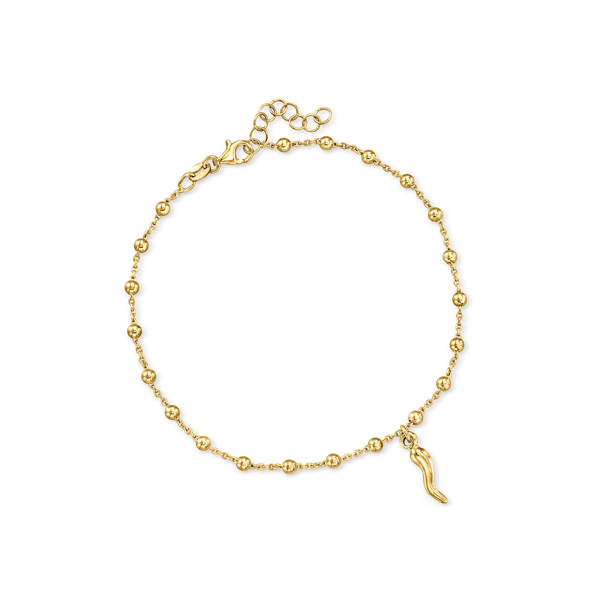 18kt Gold Over Sterling Italian Horn Bead Station Anklet. 9″