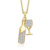 .15 ct. t.w. Diamond Wine Bottle and Glass Charm Necklace in 18kt Gold Over Sterling