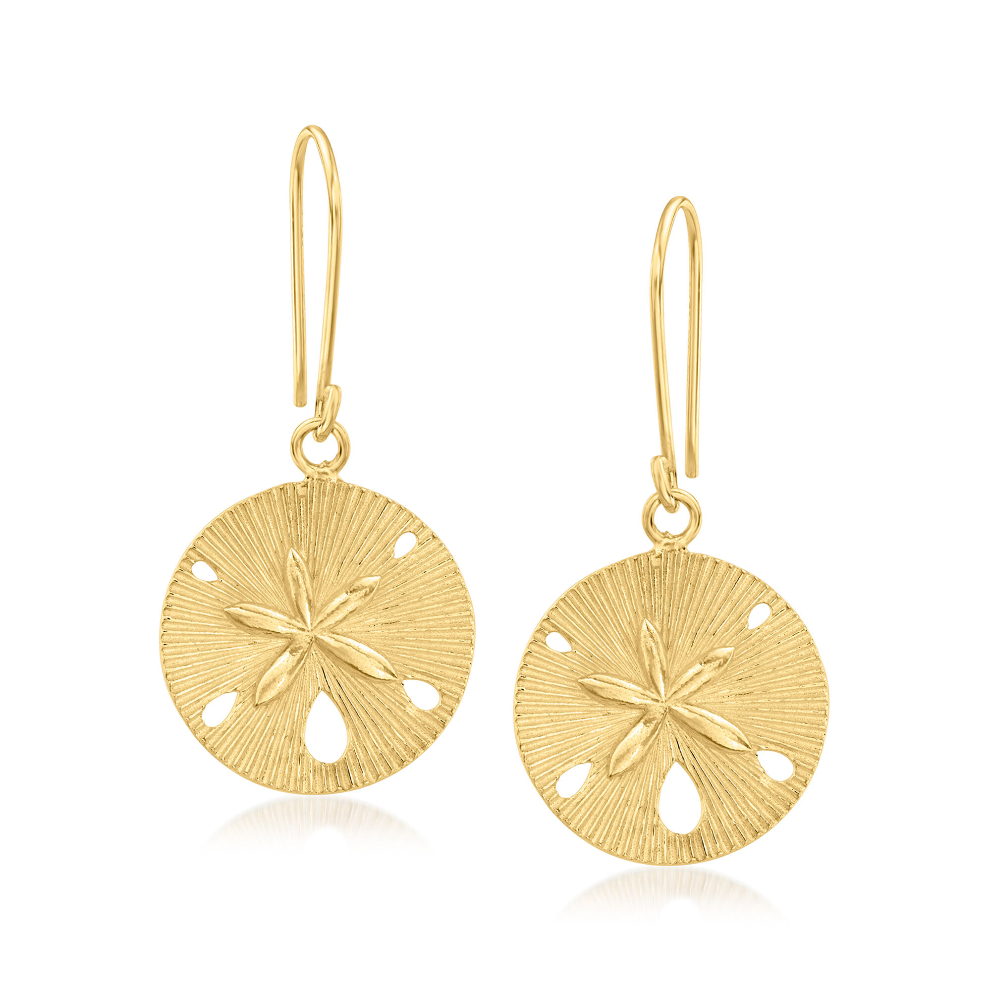 18kt Gold Over Sterling Textured and Polished Sand Dollar Drop Earrings