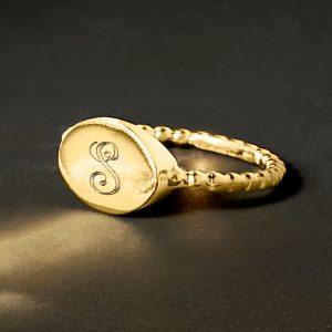 18kt Gold Vermeil Personalized Beaded Oval Ring