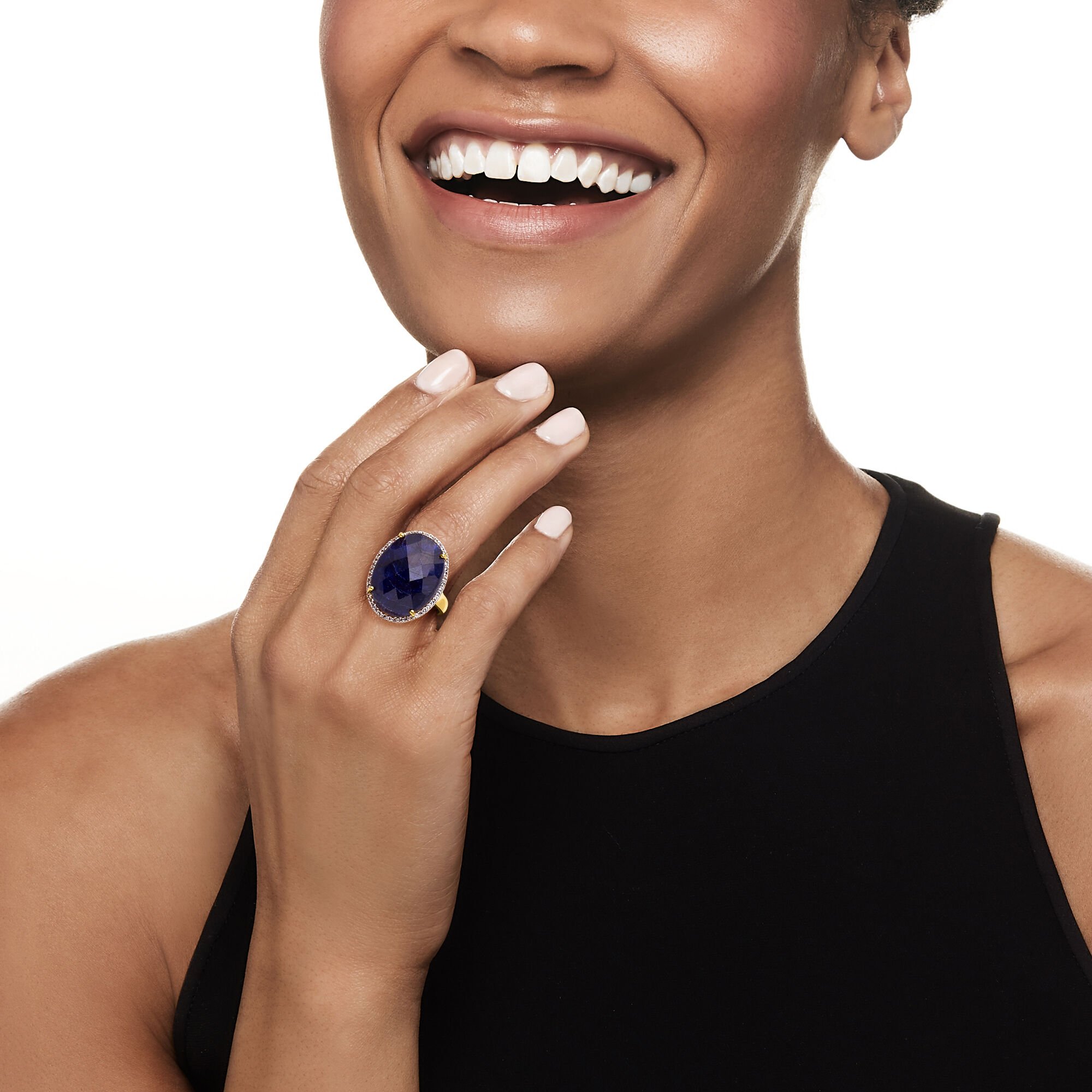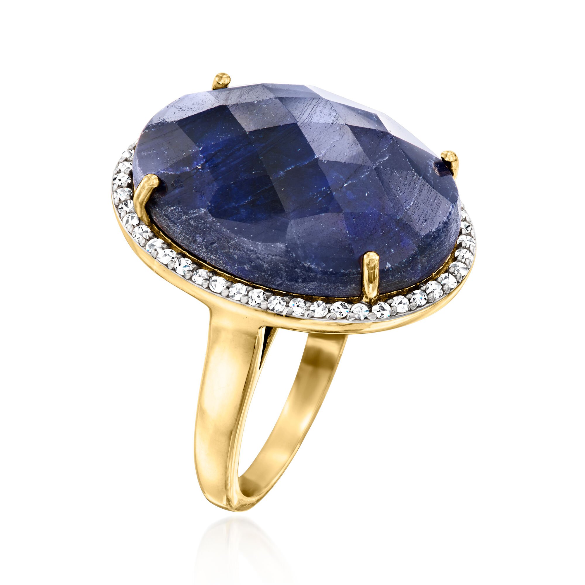 19.00 Carat Sapphire and .30 ct. t.w. White Topaz Ring in 18kt Gold Over Sterling