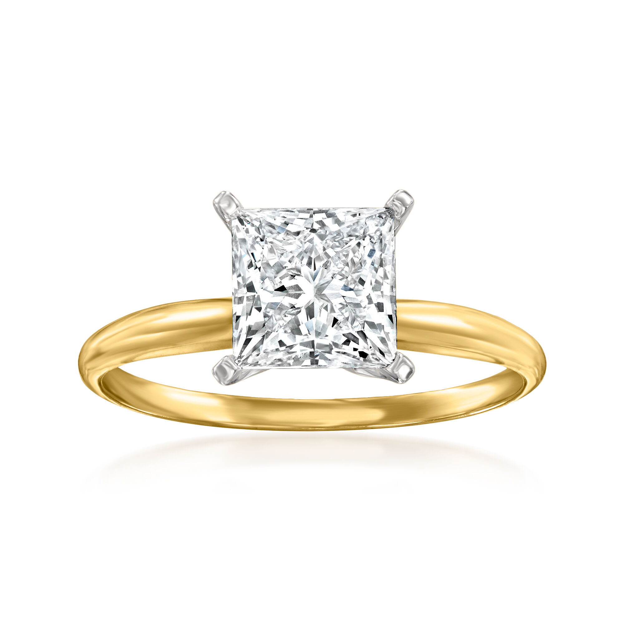 2.00 Carat Princess-Cut Lab-Grown Diamond Solitaire Ring in 14kt Yellow Gold
