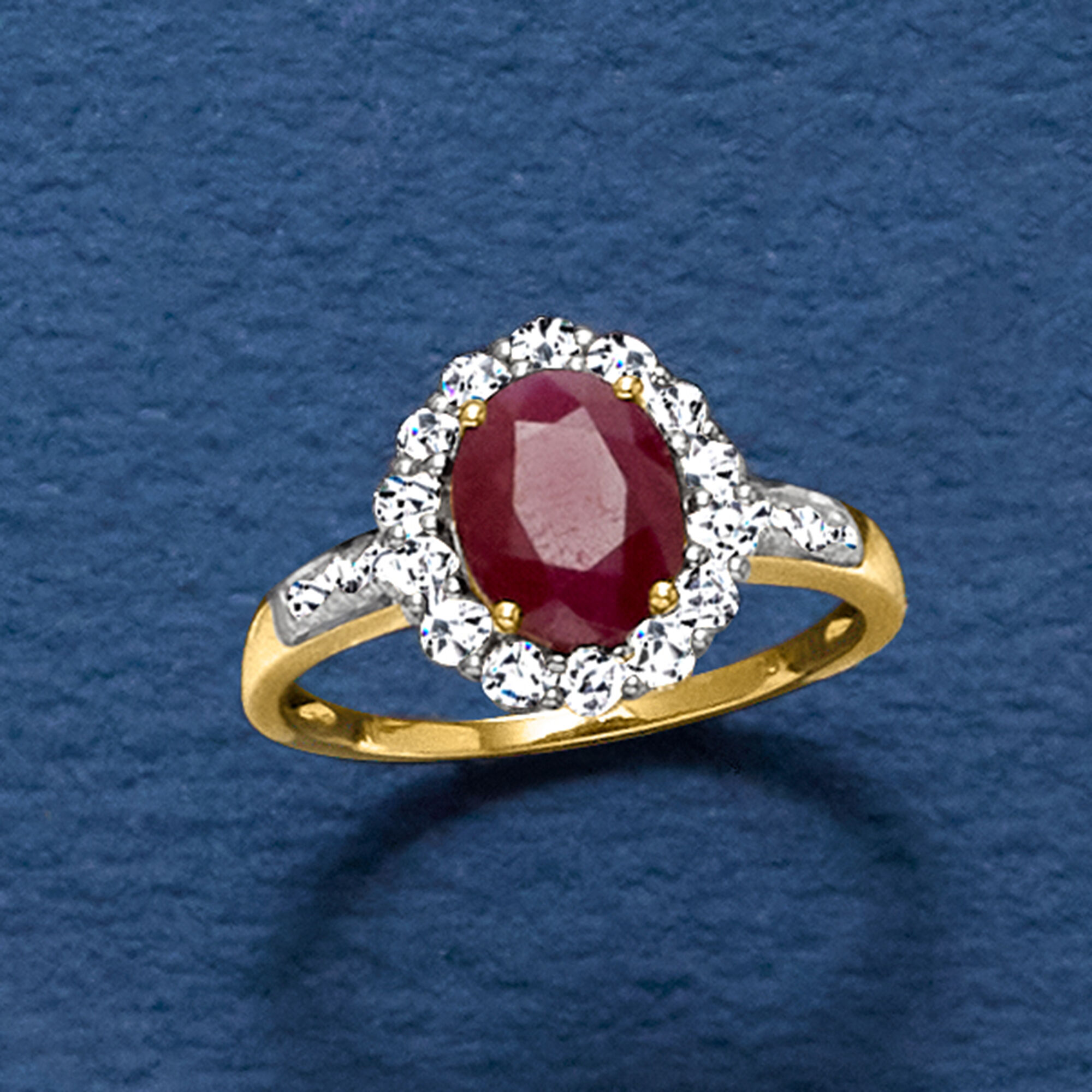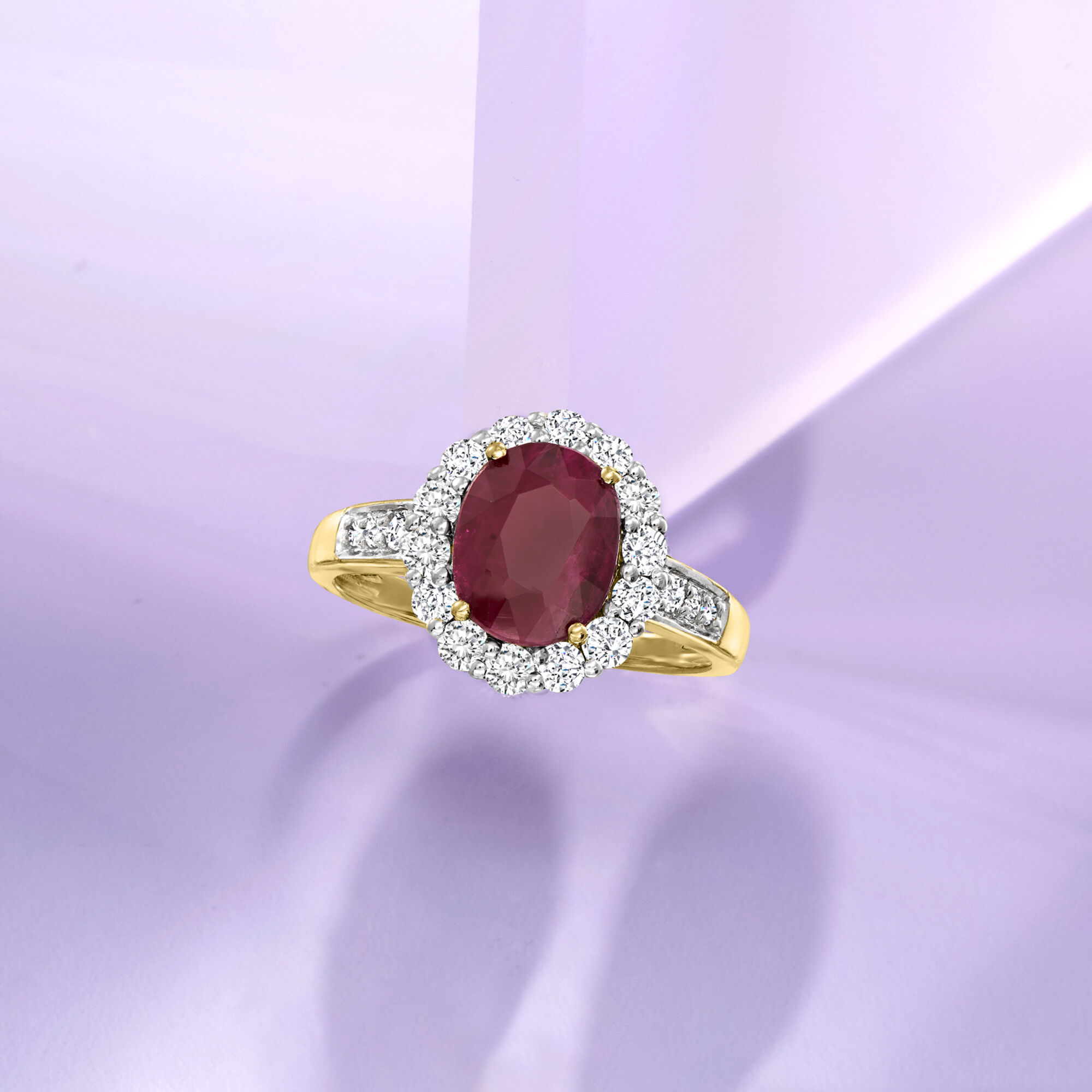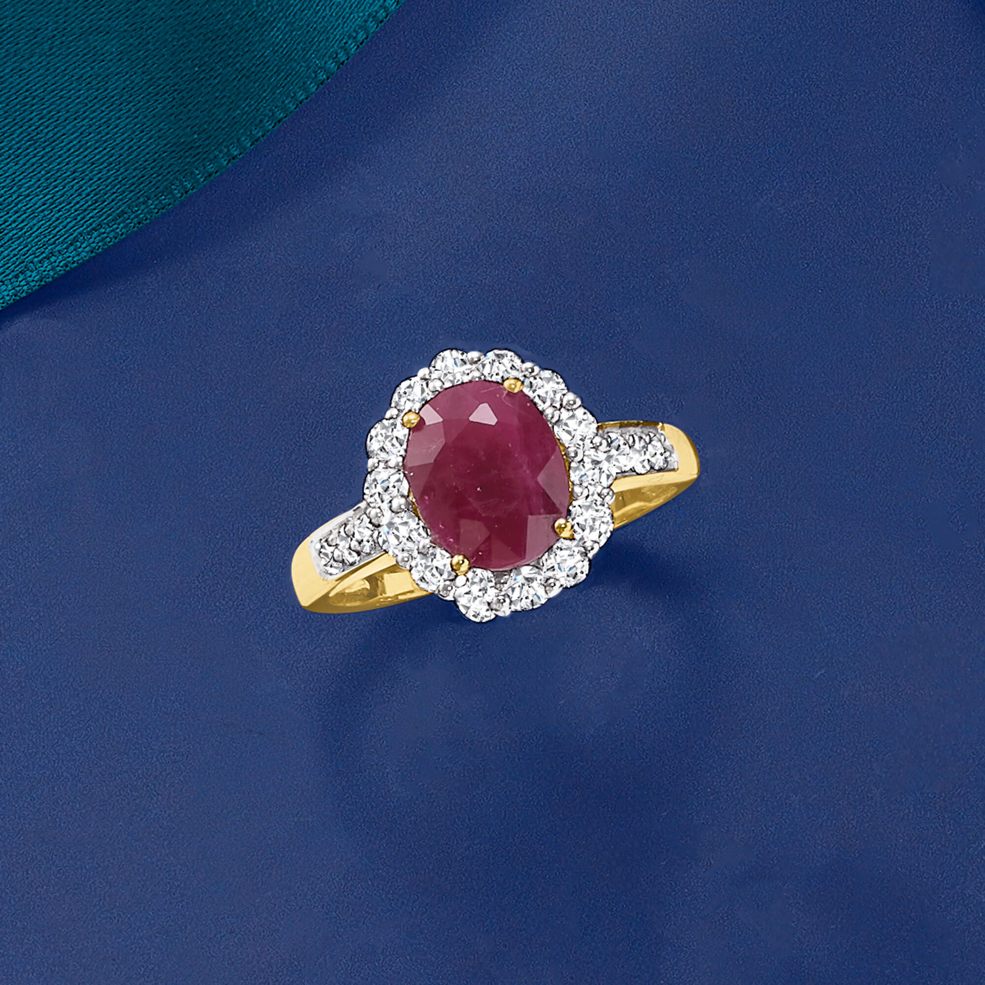 2.00 Carat Ruby and .64 ct. t.w. Diamond Ring in 18kt Yellow Gold