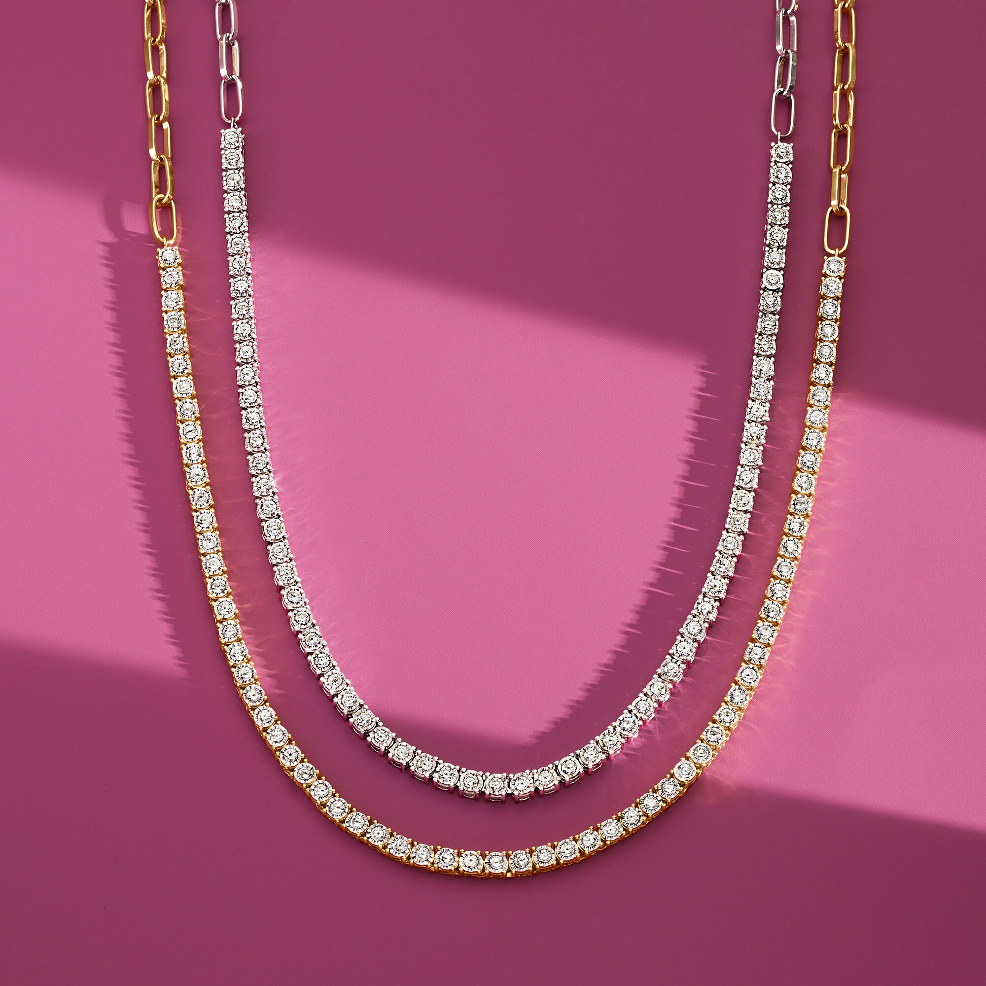 2.00 ct. t.w. Diamond Tennis Paper Clip Link Necklace in 18kt Gold Over Sterling