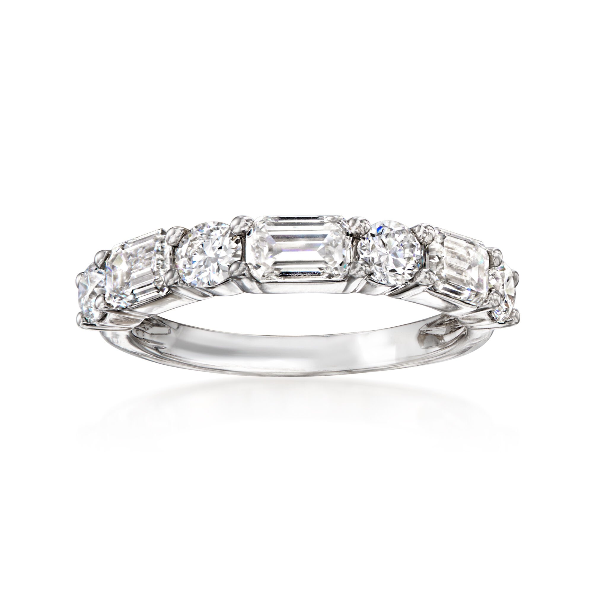 2.00 ct. t.w. Emerald-Cut and Round Lab-Grown Diamond Ring in 14kt White Gold