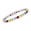 3.90 ct. t.w. CZ and 3.20 ct. t.w. Simulated Sapphire Tennis Bracelet in Sterling Silver