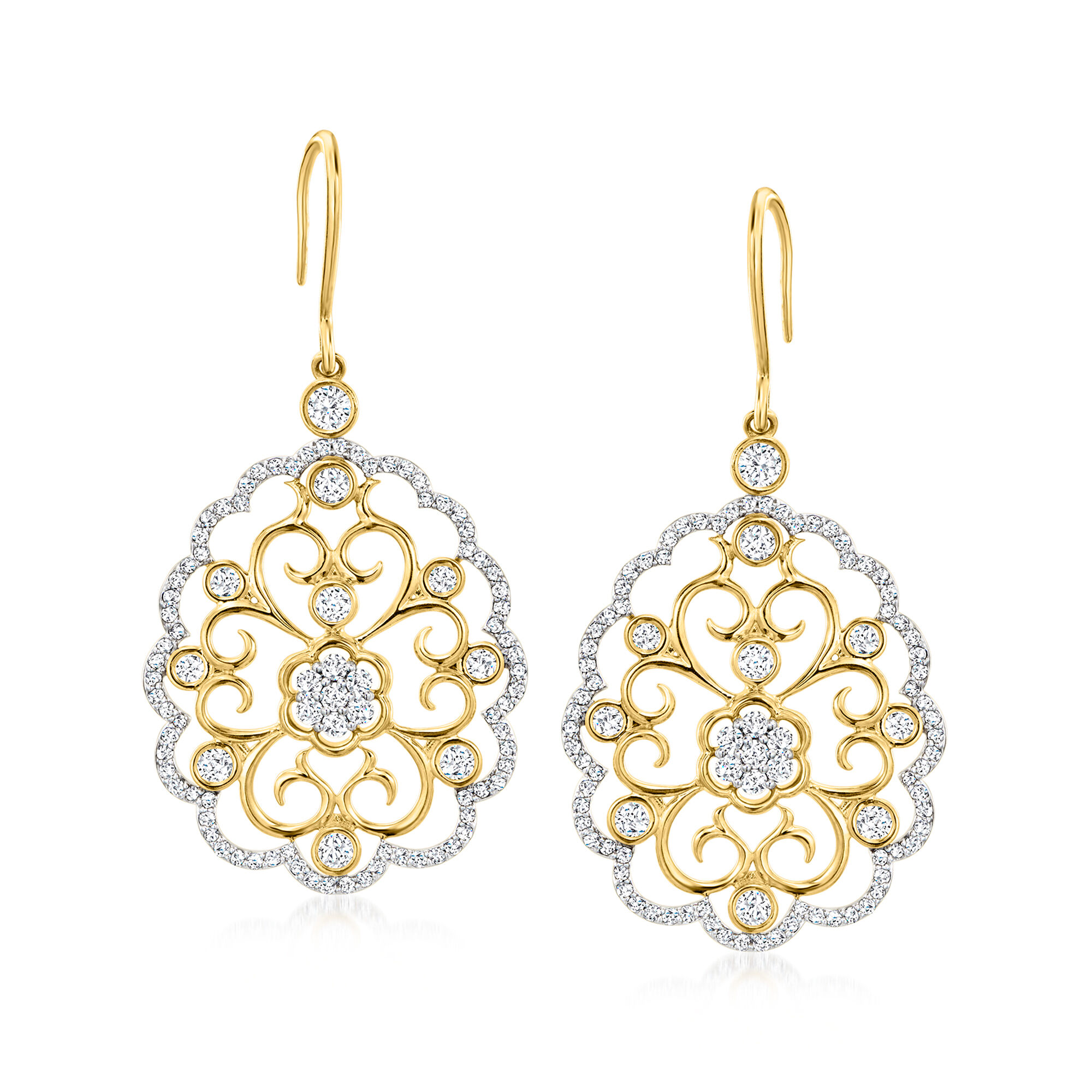 2.05 ct. t.w. Diamond Filigree Drop Earrings in 18kt Gold Over Sterling