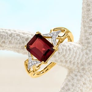 2.20 Carat Garnet Ring with Diamonds in 14kt Yellow Gold