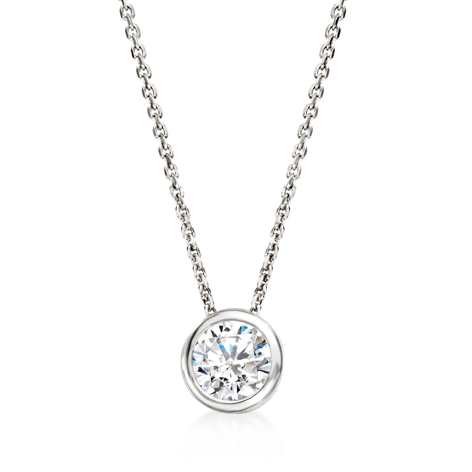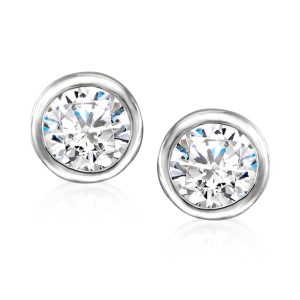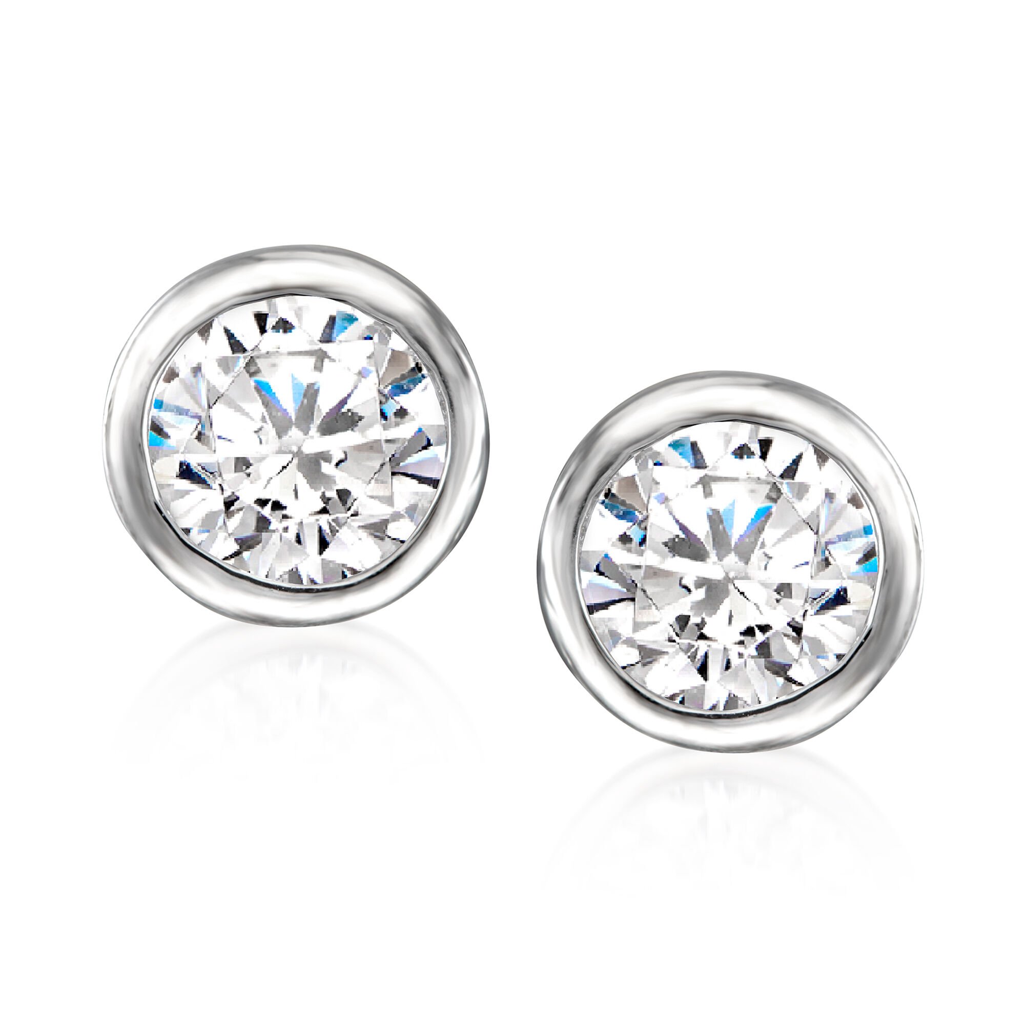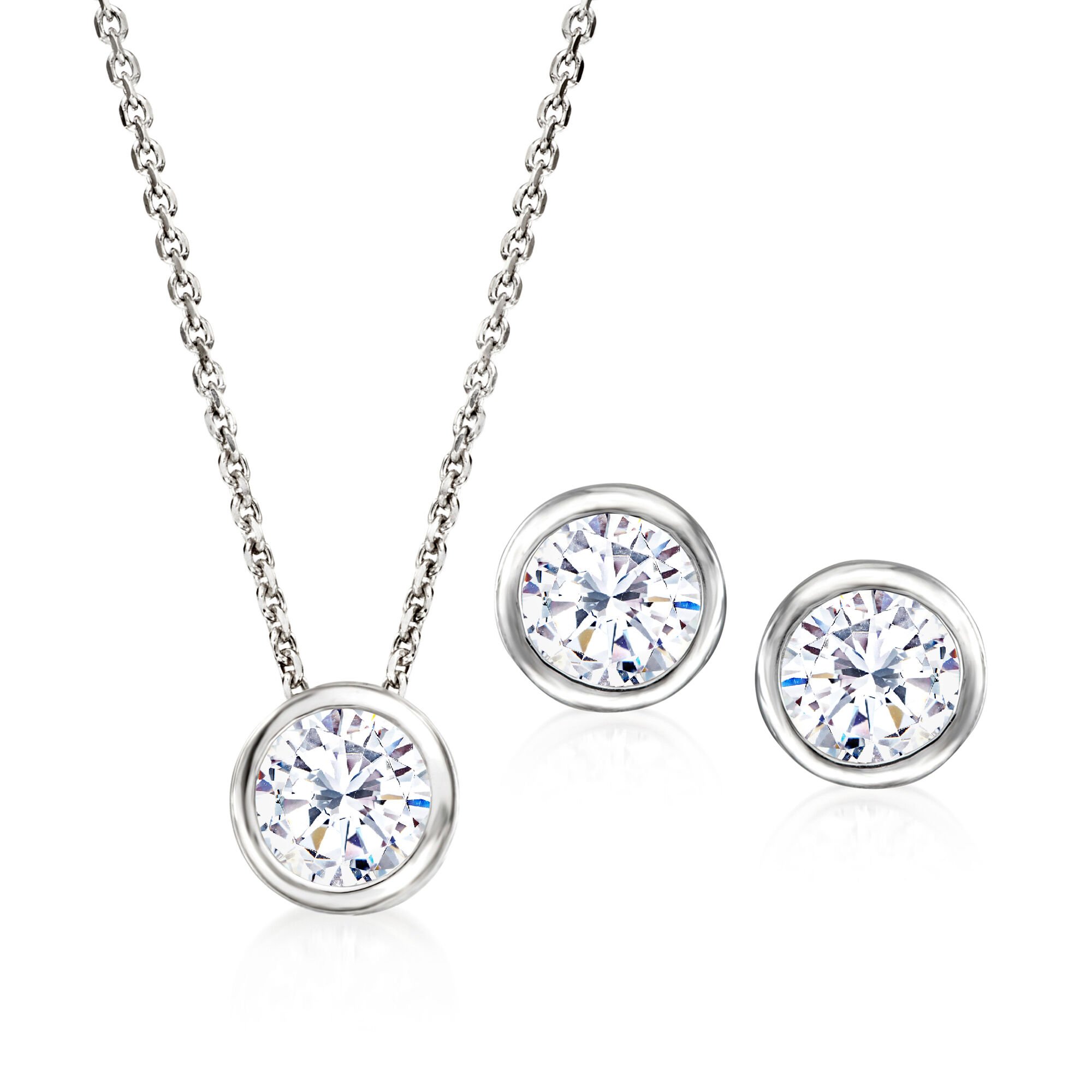 2.40 ct. t.w. Bezel-Set CZ Jewelry Set: Pendant Necklace and Stud Earrings in Sterling Silver. 18″