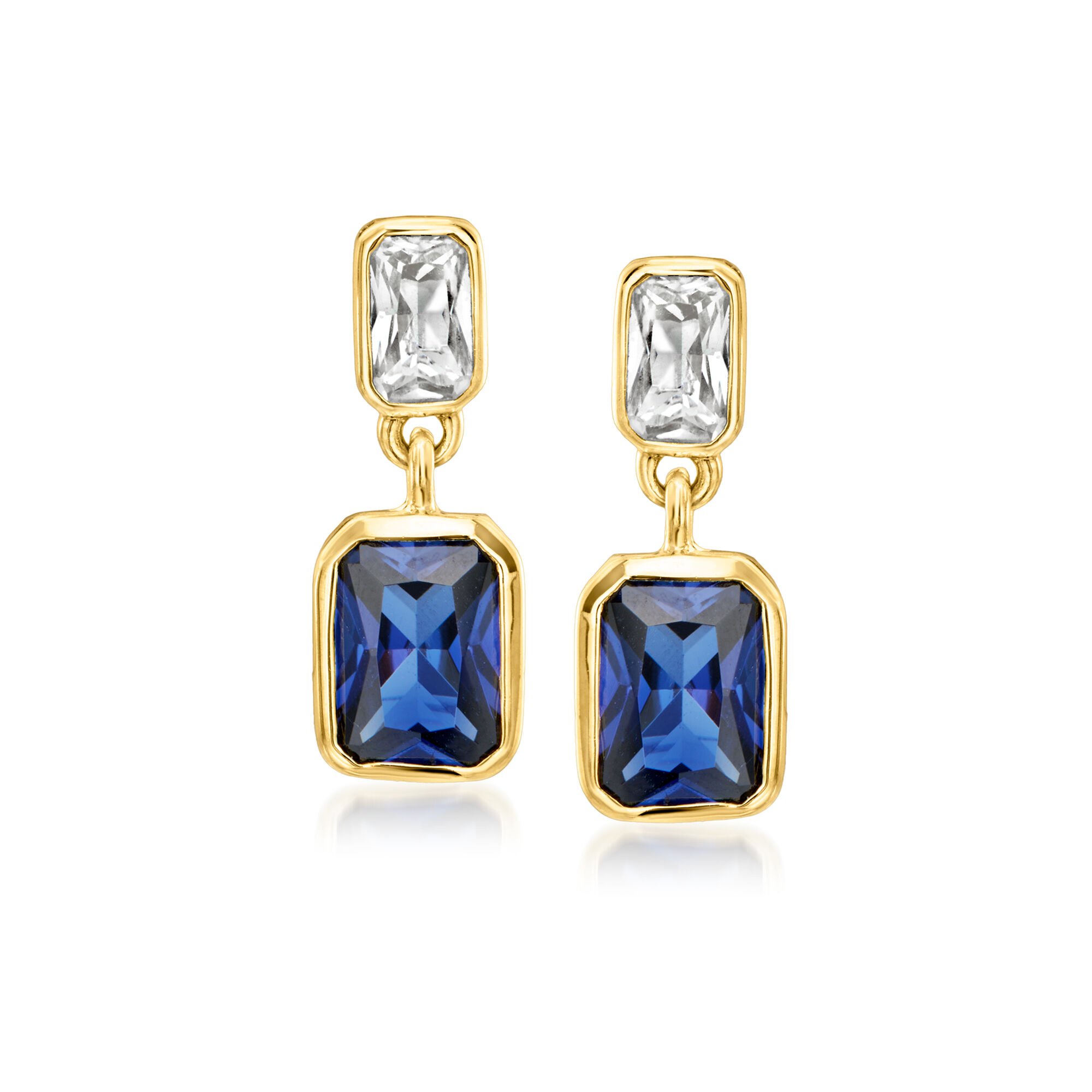 2.40 ct. t.w. Lab-Grown Blue and White Sapphire Drop Earrings in 18kt Gold Vermeil