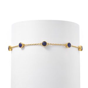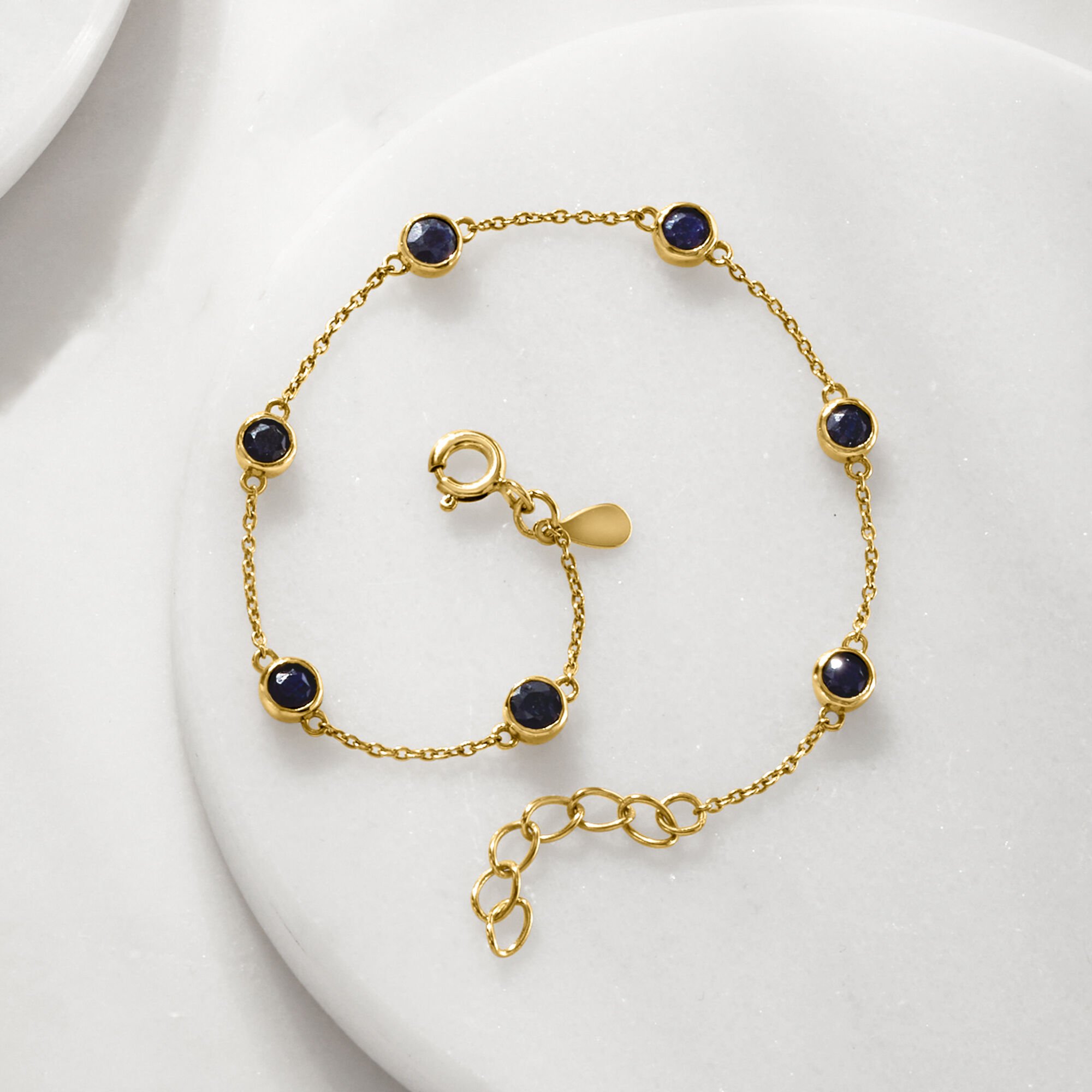 2.50 ct. t.w. Bezel-Set Sapphire Station Bracelet in 18kt Gold Over Sterling. 7″