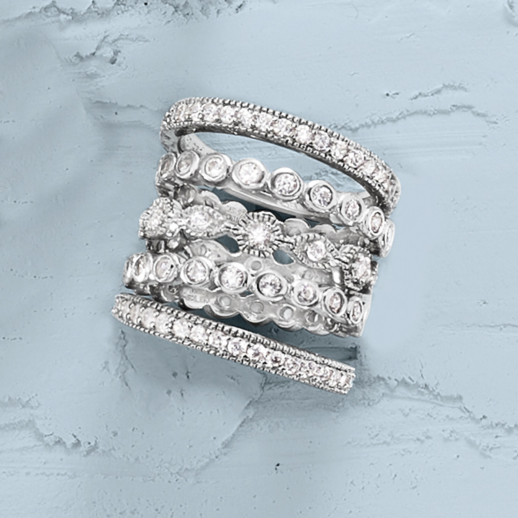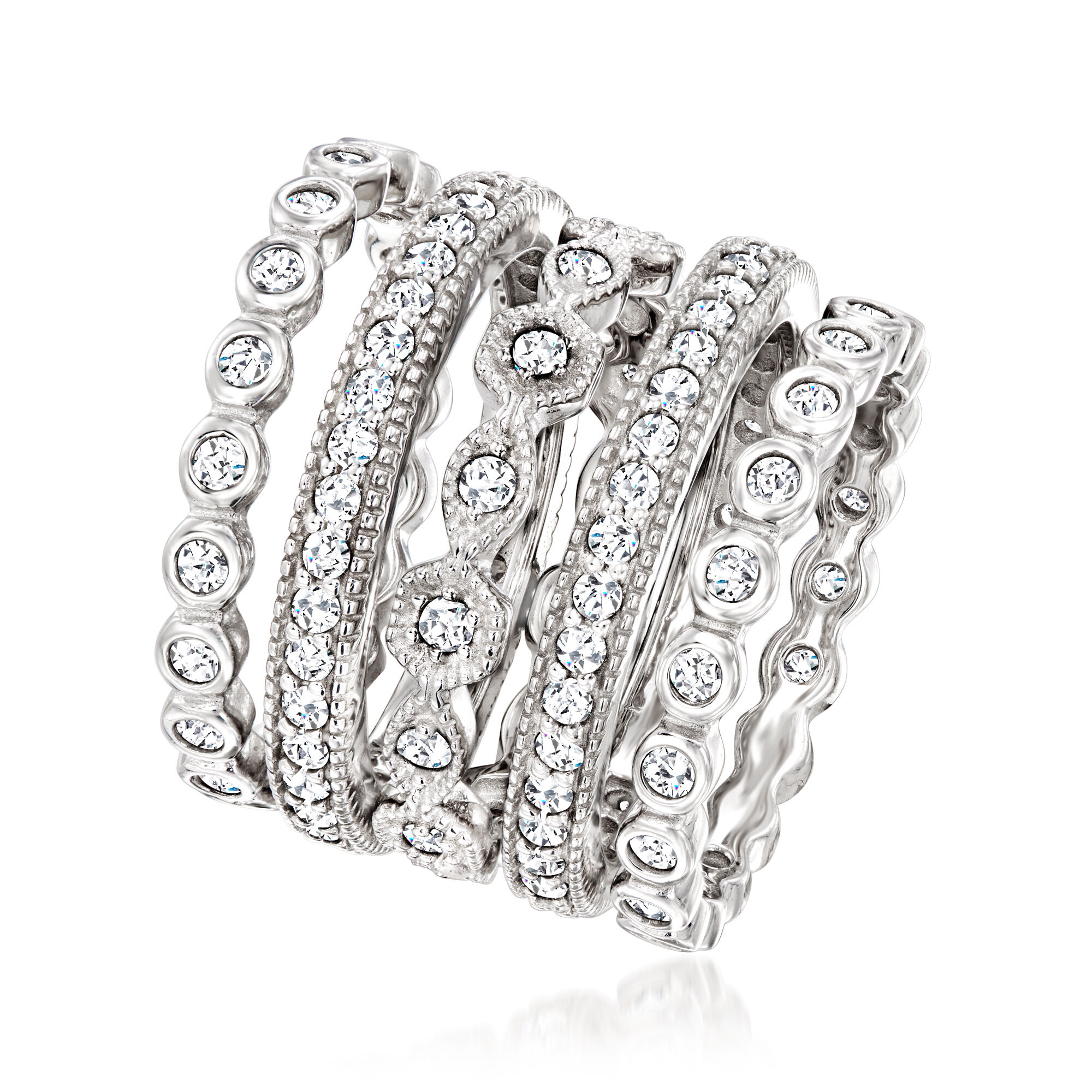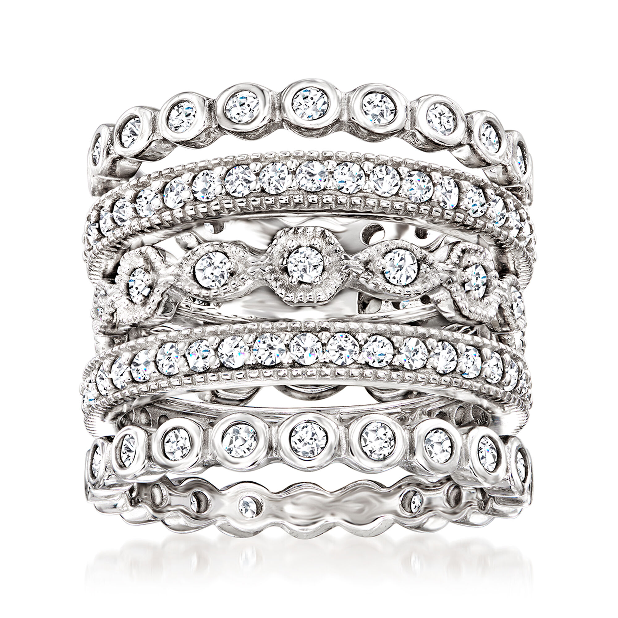 2.50 ct. t.w. CZ Jewelry Set: Five Eternity Bands in Sterling Silver
