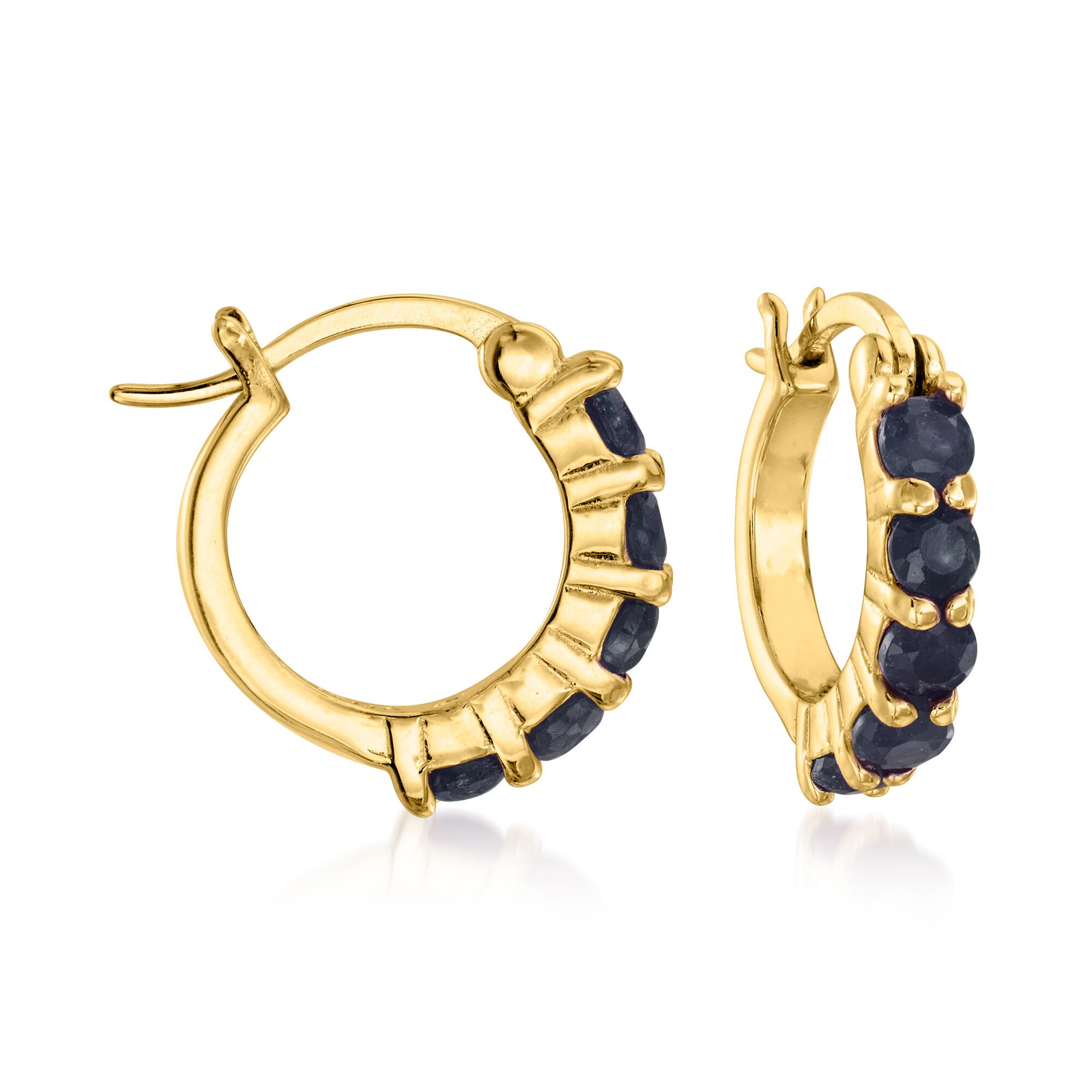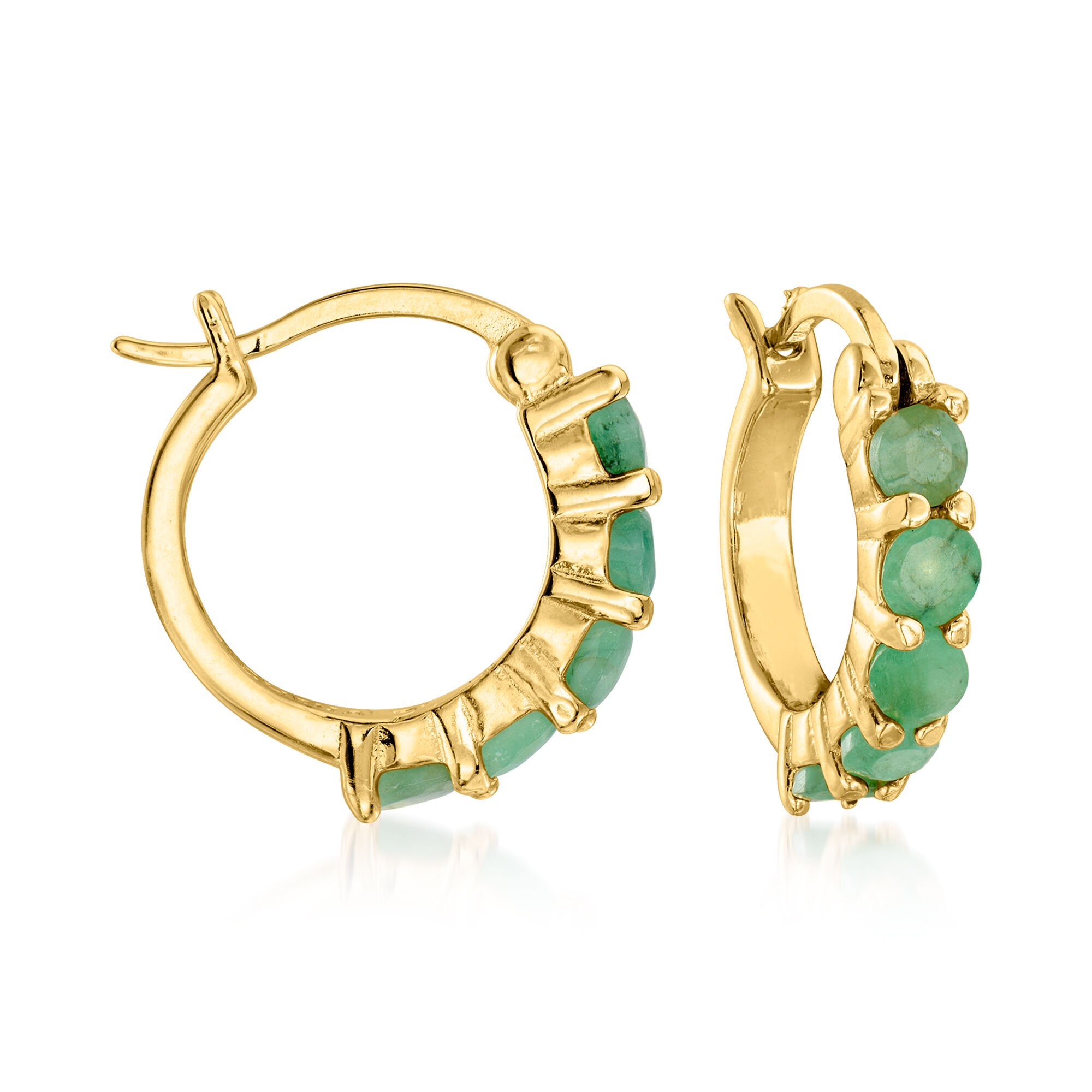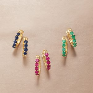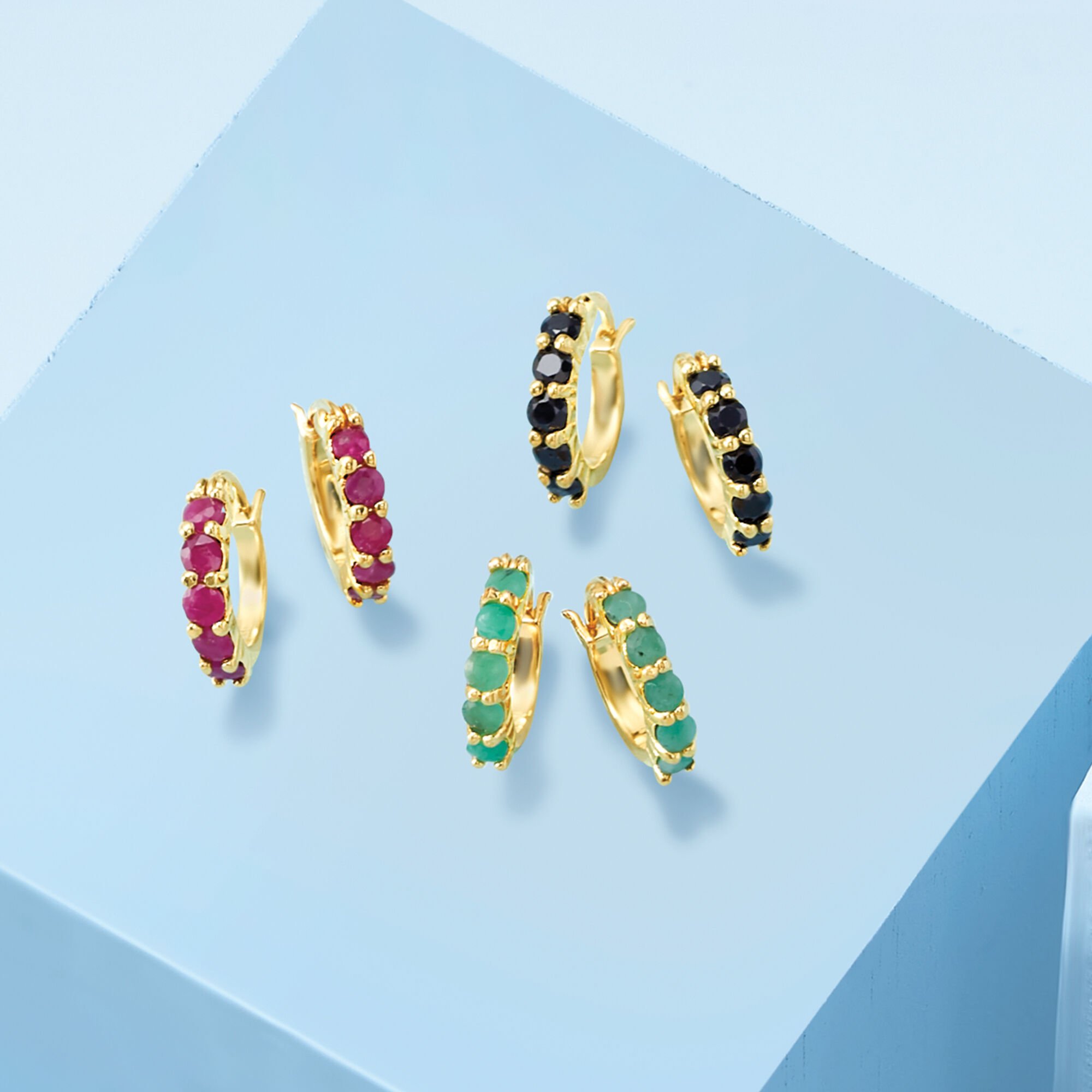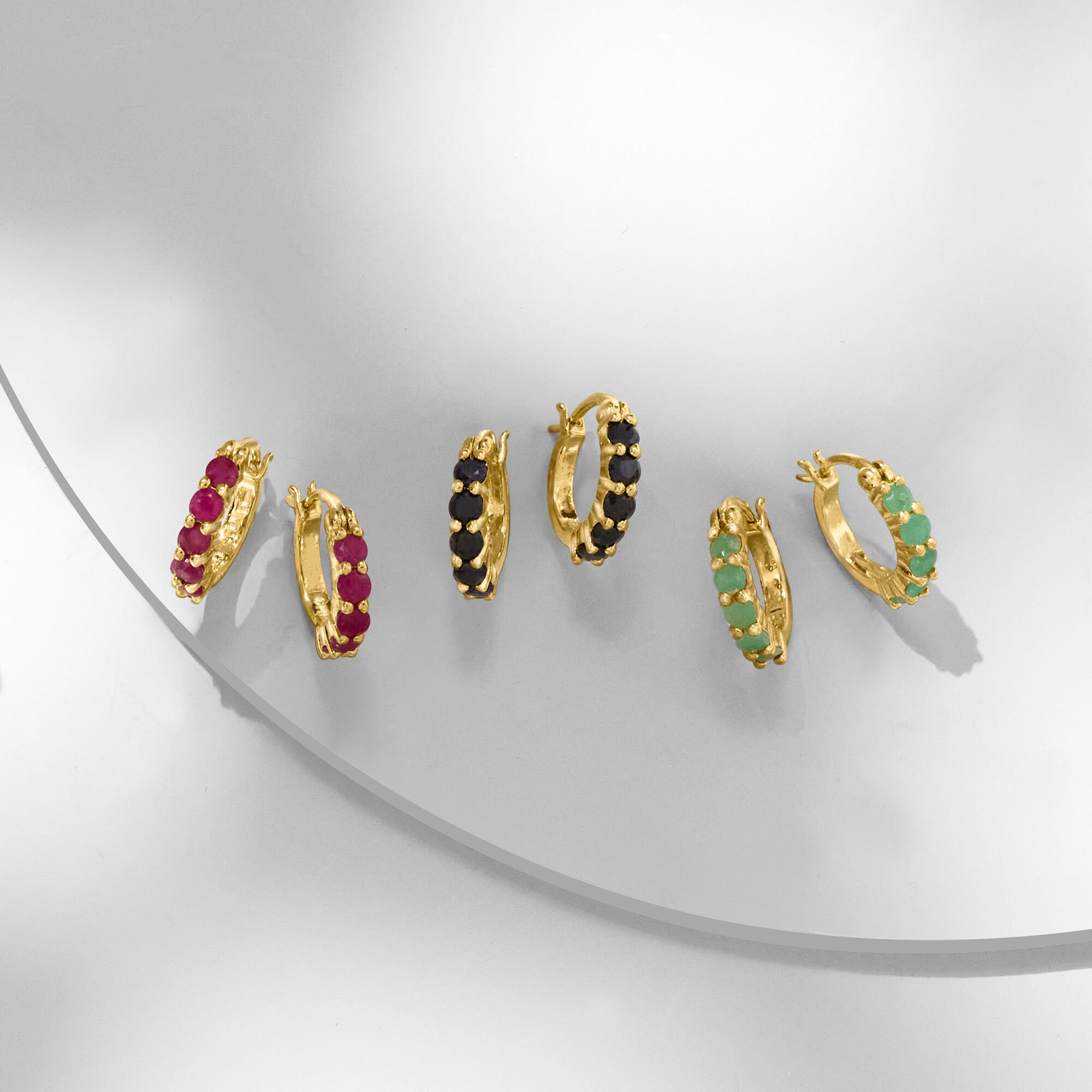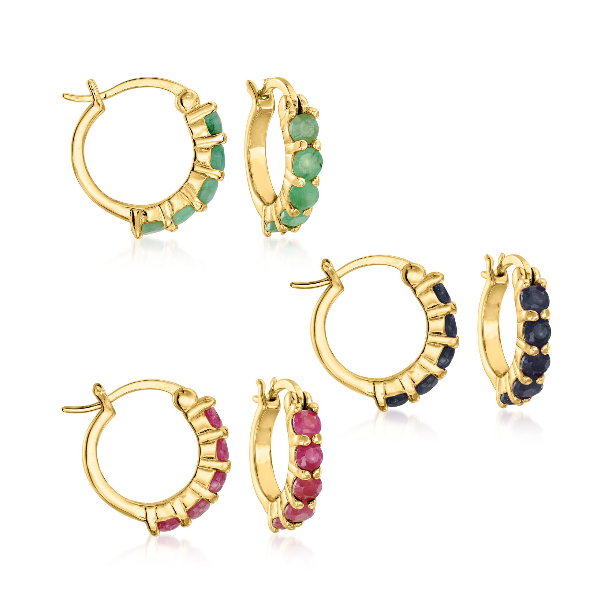 2.60 ct. t.w. Ruby, Emerald and Sapphire Jewelry Set: Three Pairs of Huggie Hoop Earrings in 18kt Gold Over Sterling