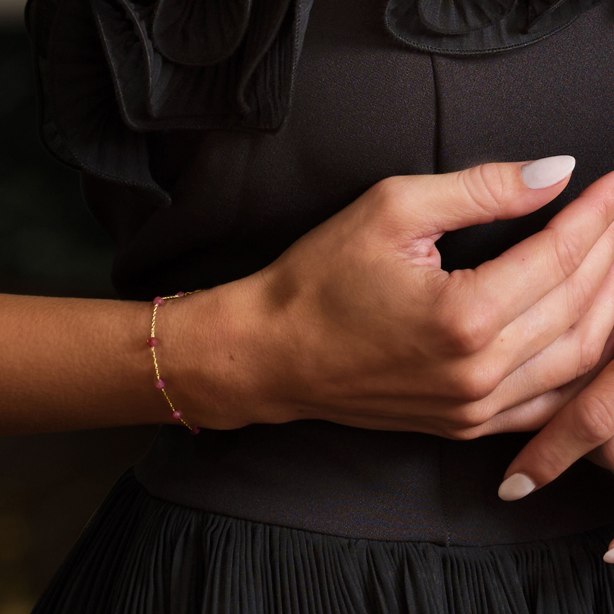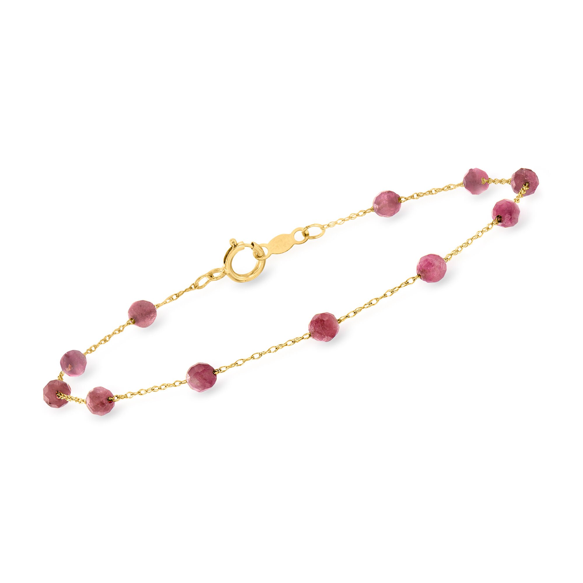 2.70 ct. t.w. Pink Tourmaline Bead Station Bracelet in 14kt Yellow Gold