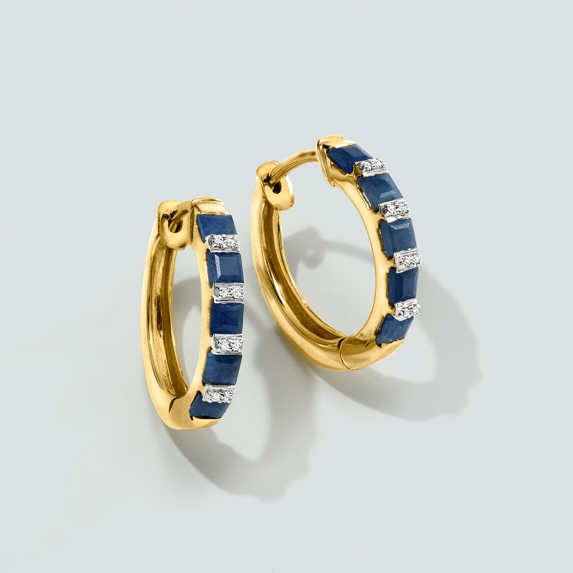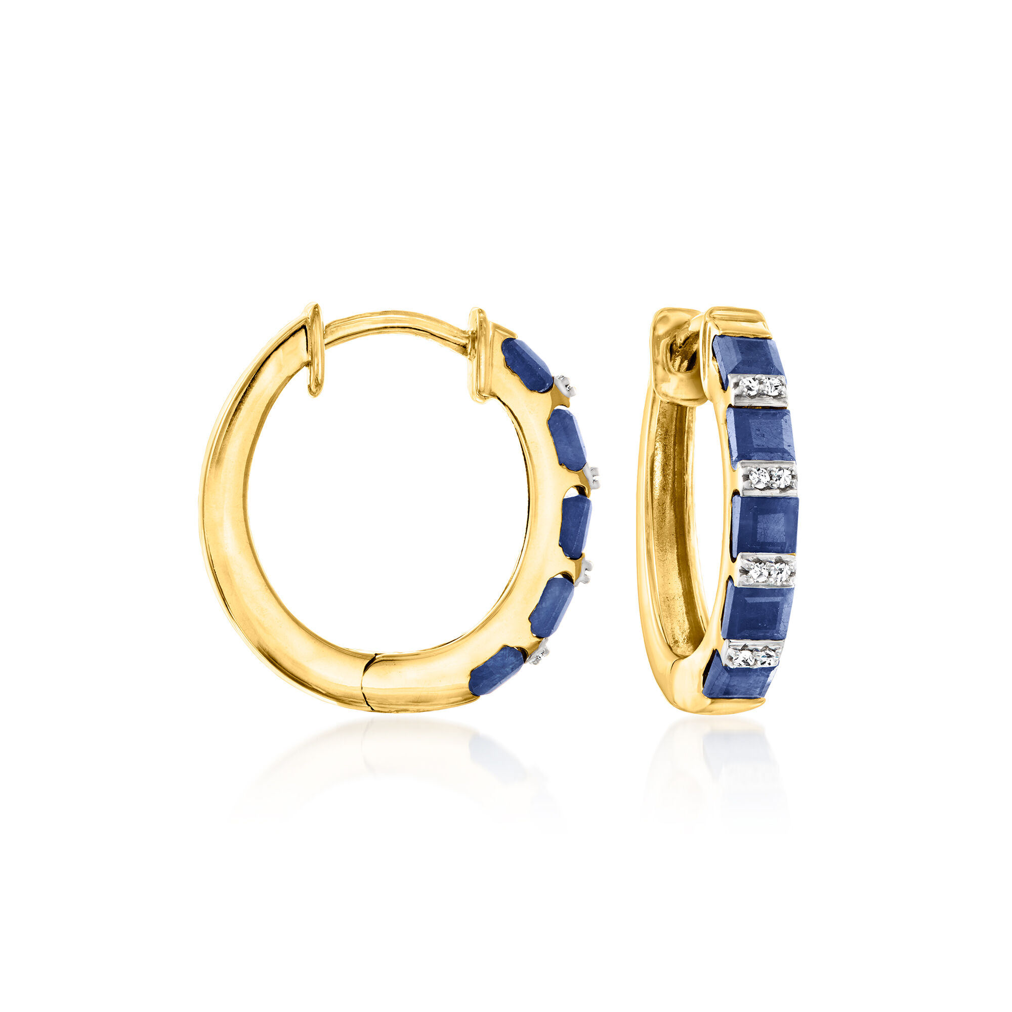 2.80 ct. t.w. Sapphire Hoop Earrings with Diamonds in 18kt Gold Over Sterling. 3/4″