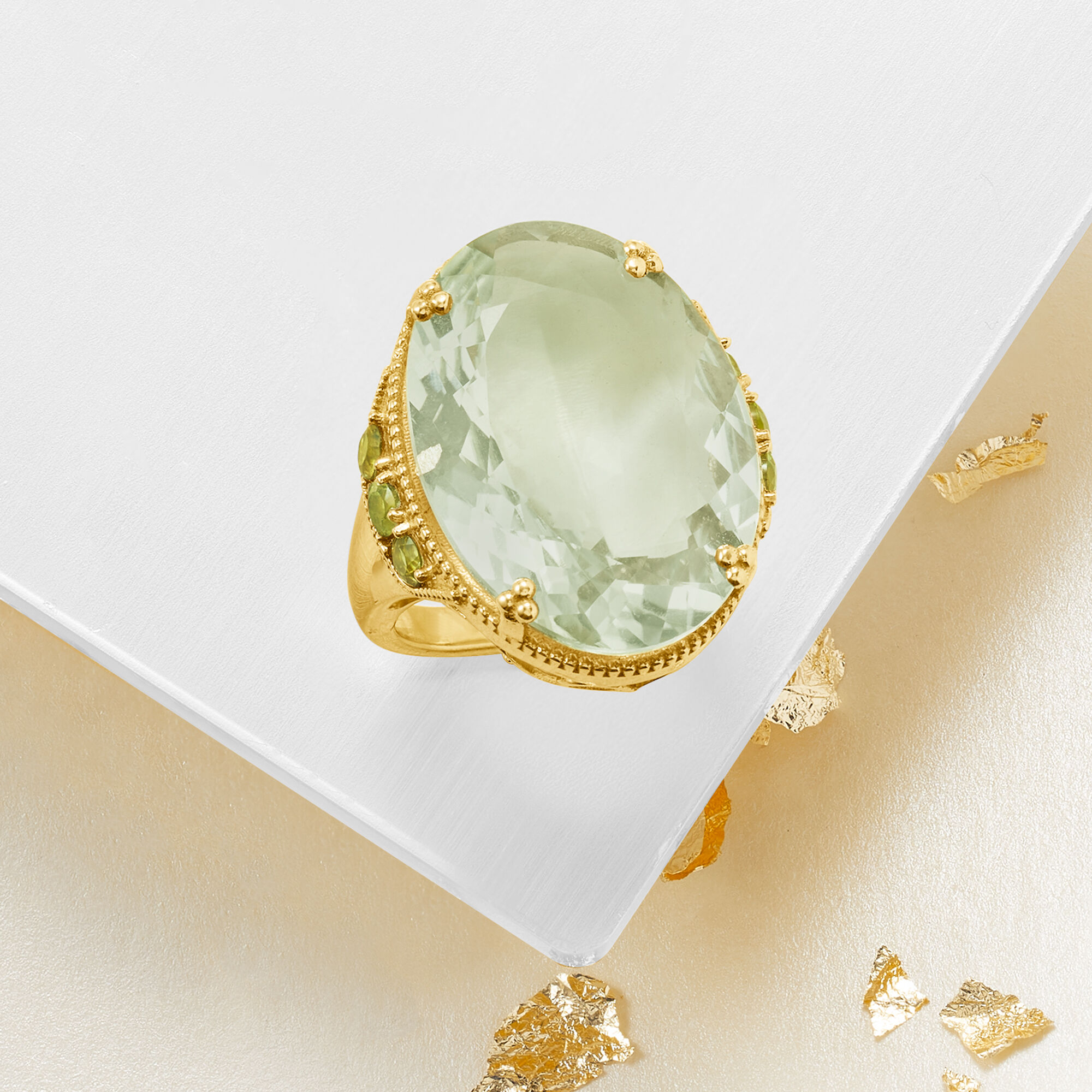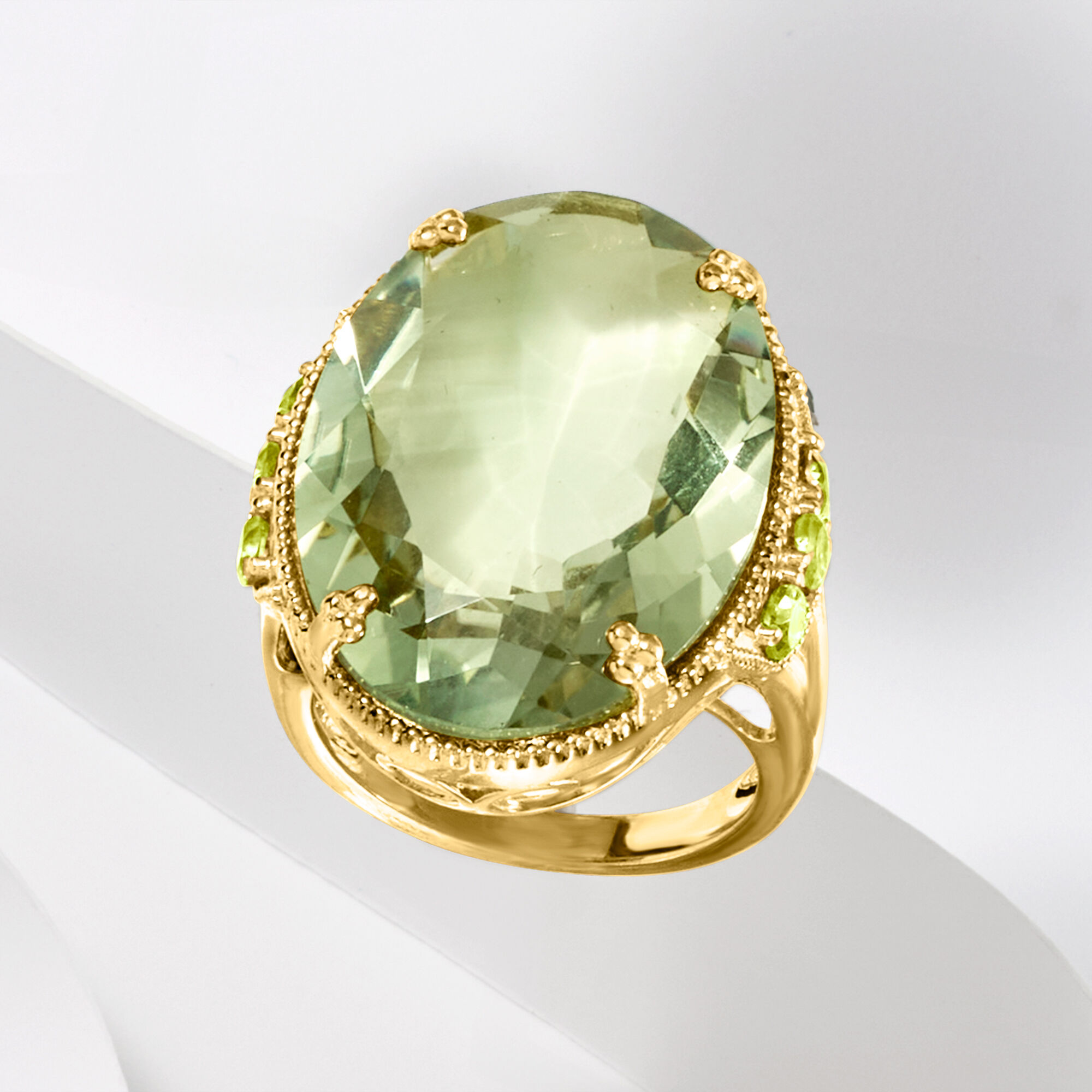 20.00 Carat Prasiolite and .80 ct. t.w. Peridot Ring in 18kt Gold Over Sterling
