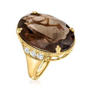 20.00 Carat Smoky Quartz and 1.60 ct. t.w. White Zircon Ring in 18kt Gold Over Sterling