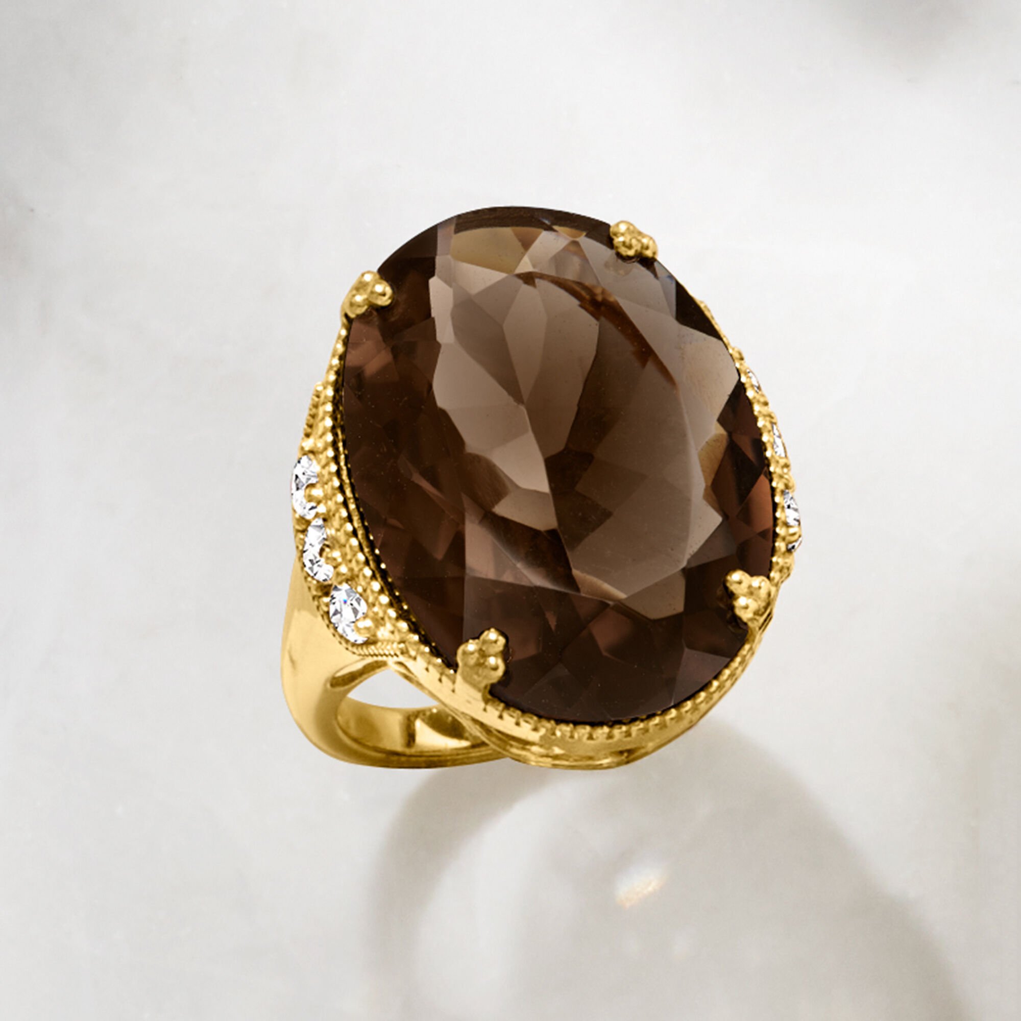 20.00 Carat Smoky Quartz and 1.60 ct. t.w. White Zircon Ring in 18kt Gold Over Sterling