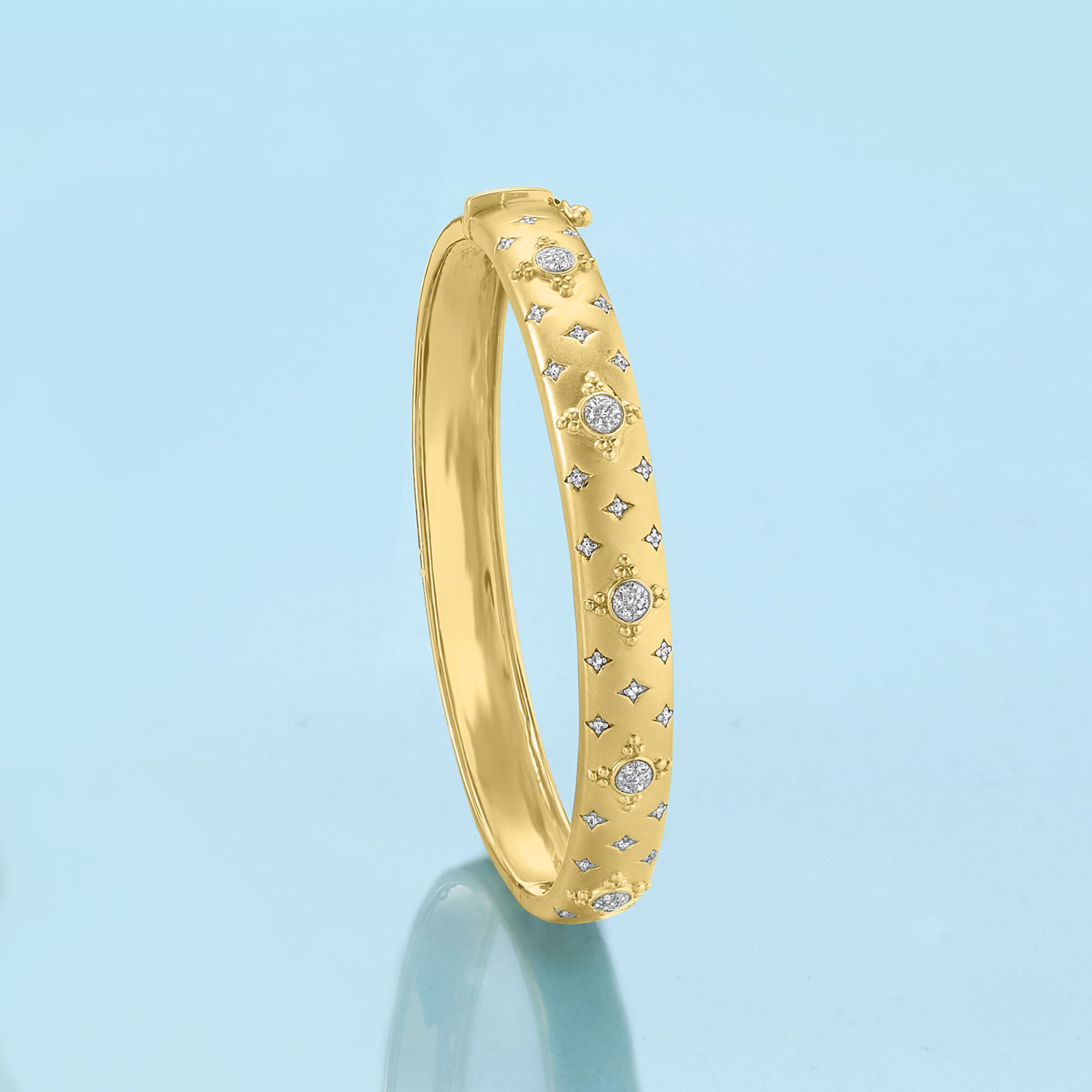 .20 ct. t.w. Diamond Cluster Bangle Bracelet in 18kt Gold Over Sterling