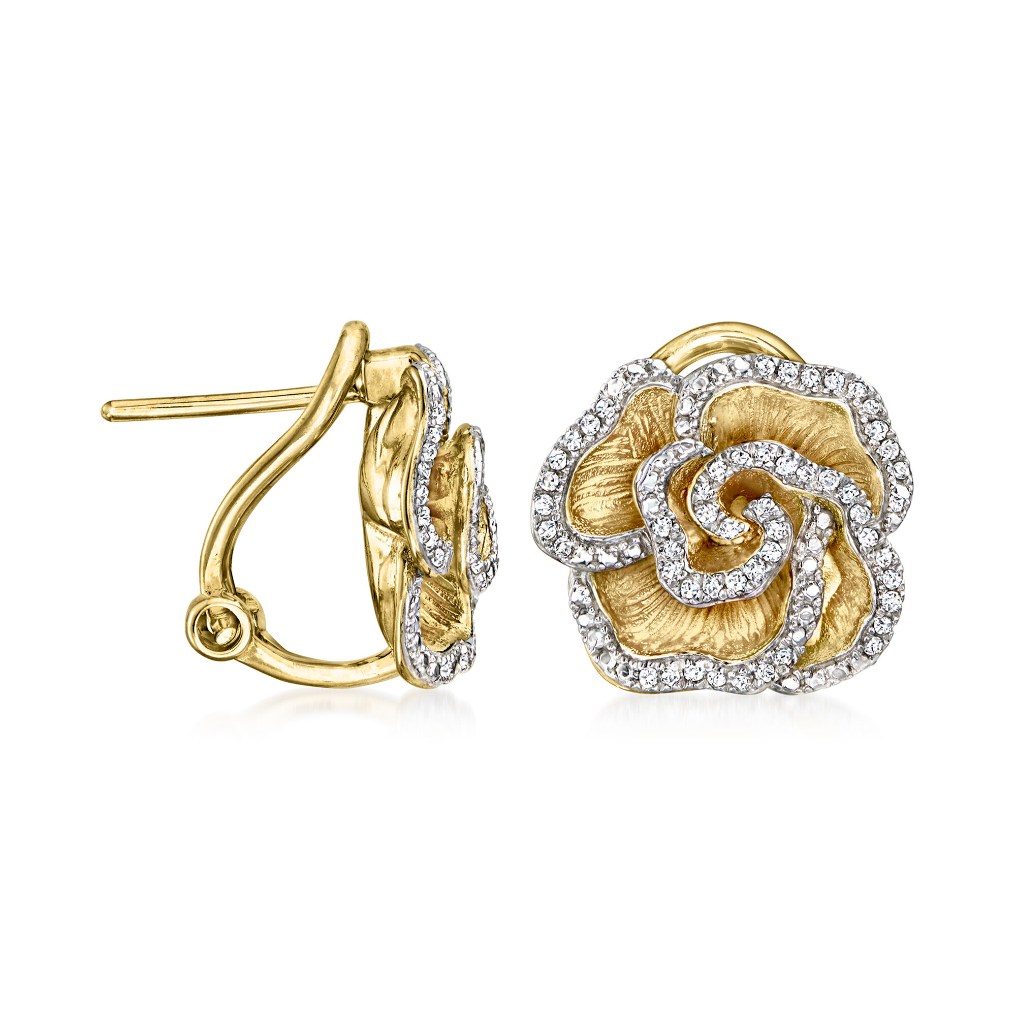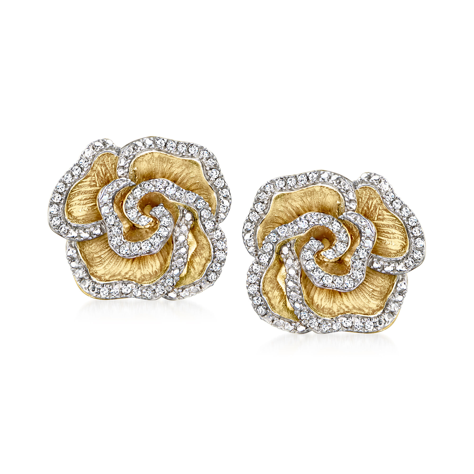 .20 ct. t.w. Diamond Flower Earrings in 18kt Gold Over Sterling