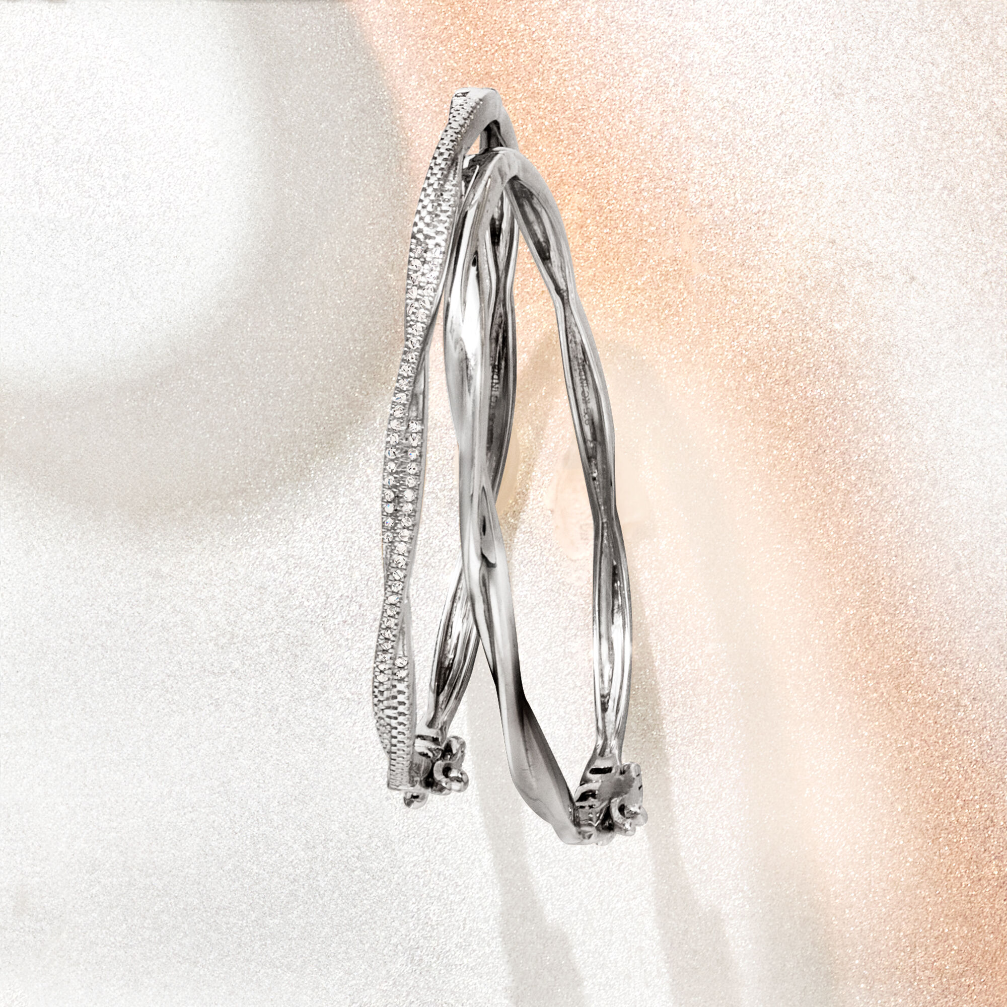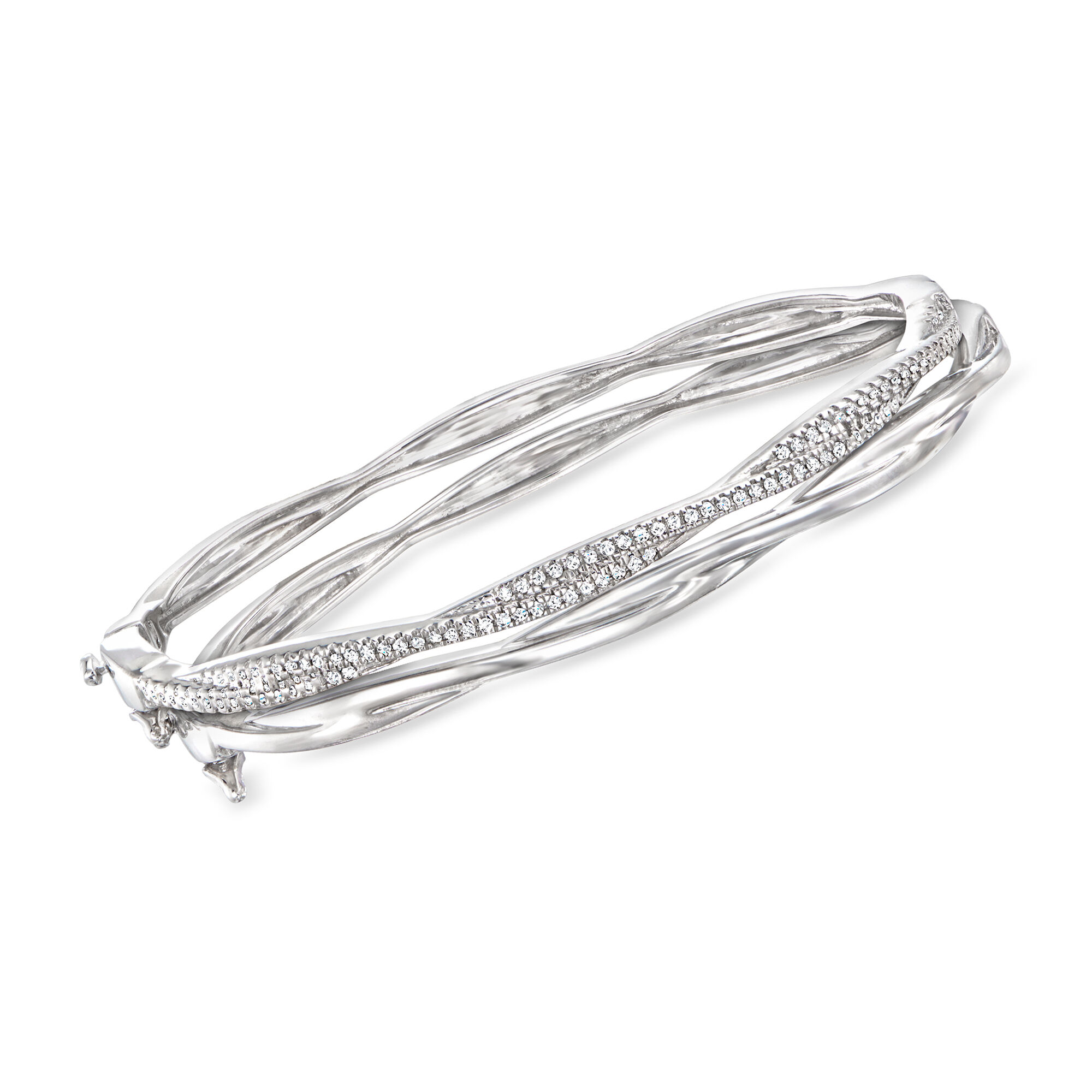 .20 ct. t.w. Diamond Jewelry Set: Two Twisted Bangle Bracelets in Sterling Silver