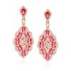 .20 ct. t.w. Ruby and Red Enamel Heart Drop Earrings in 18kt Gold Over Sterling