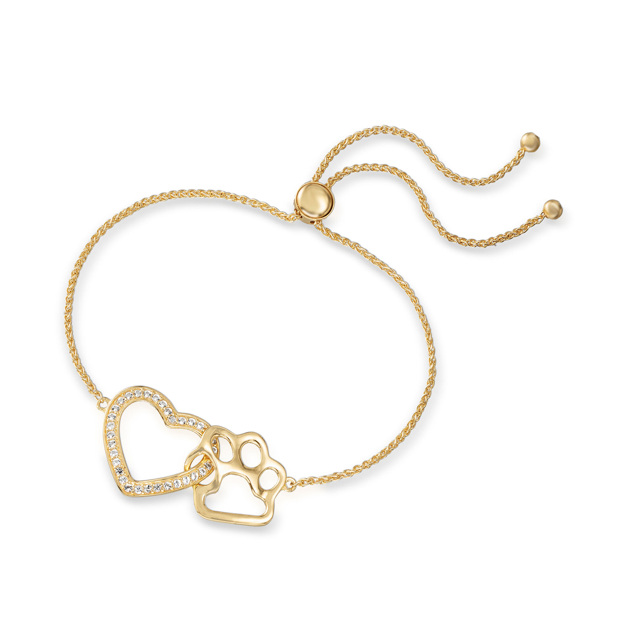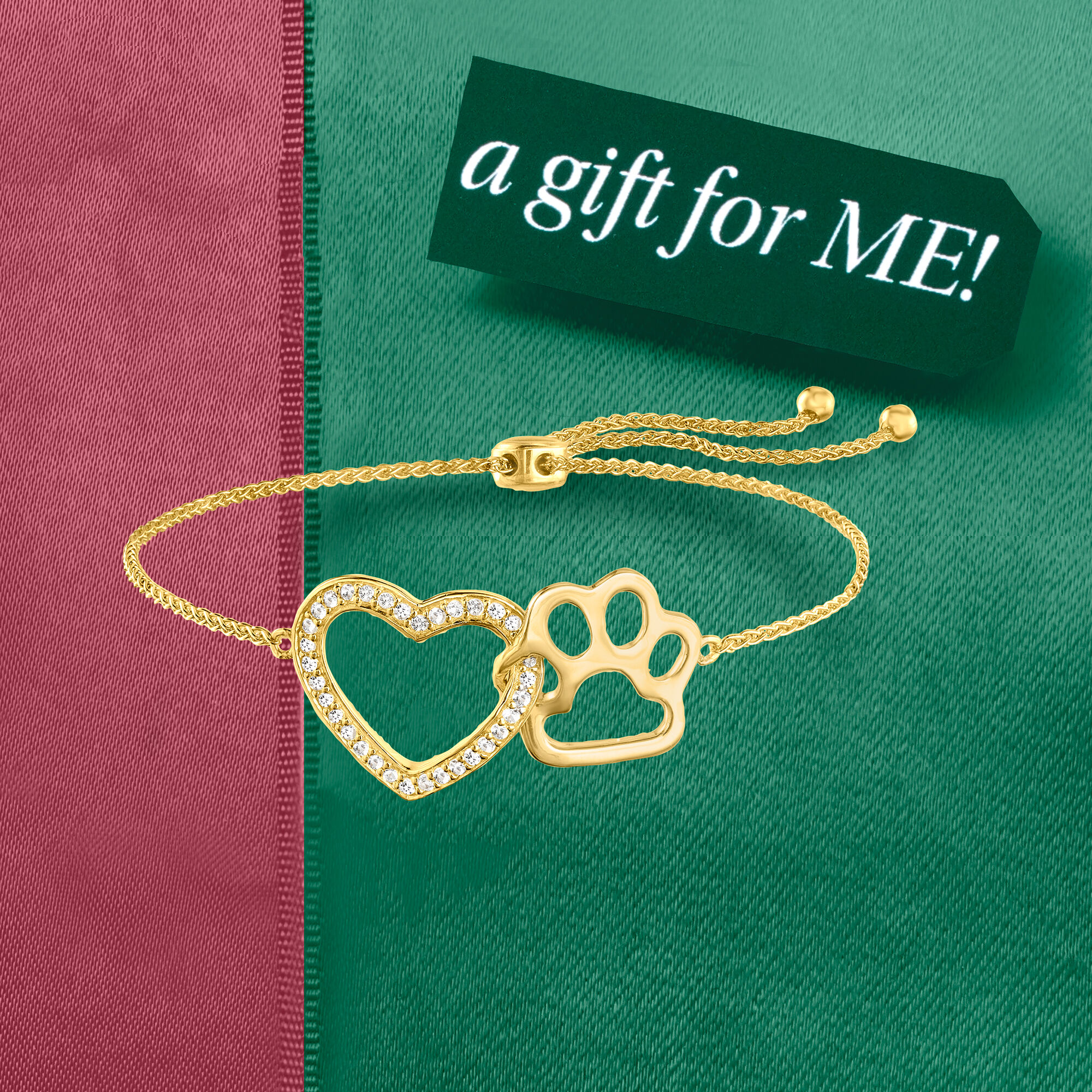 .20 ct. t.w. White Topaz Heart and Paw Bolo Bracelet in 18kt Gold Over Sterling