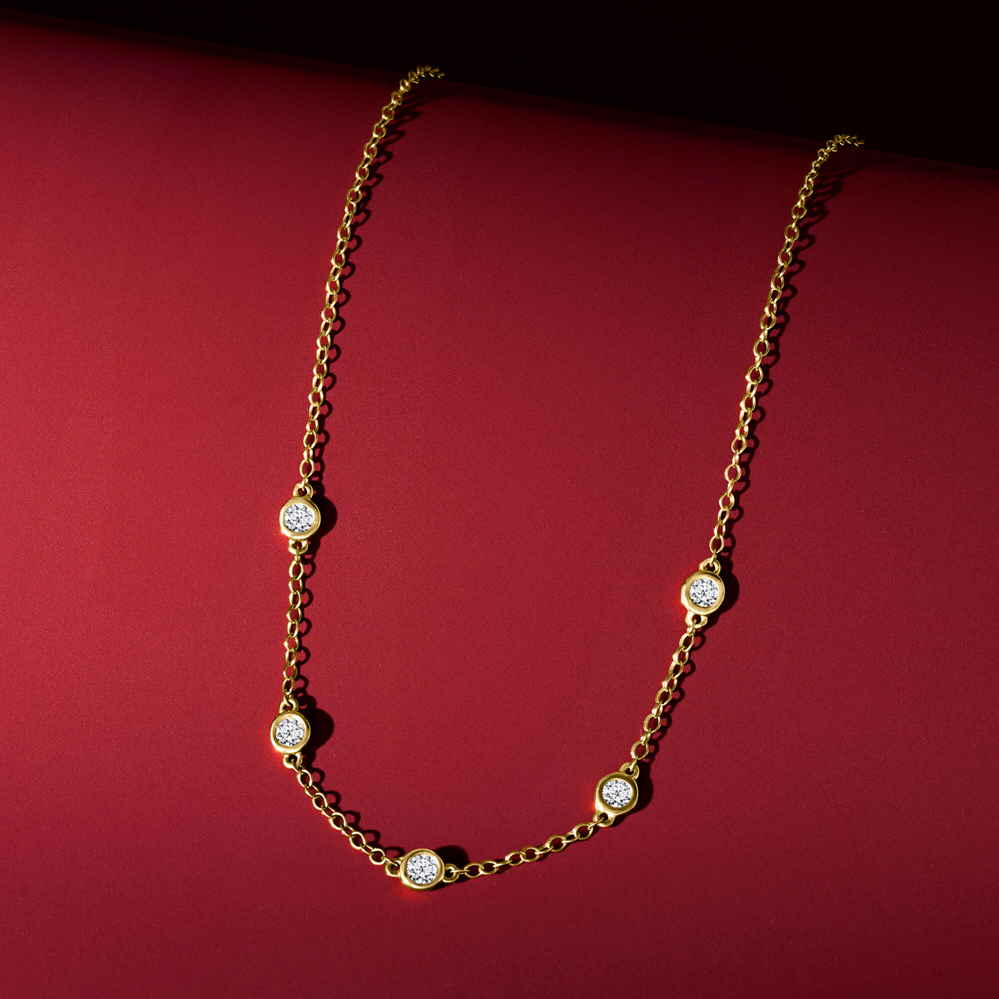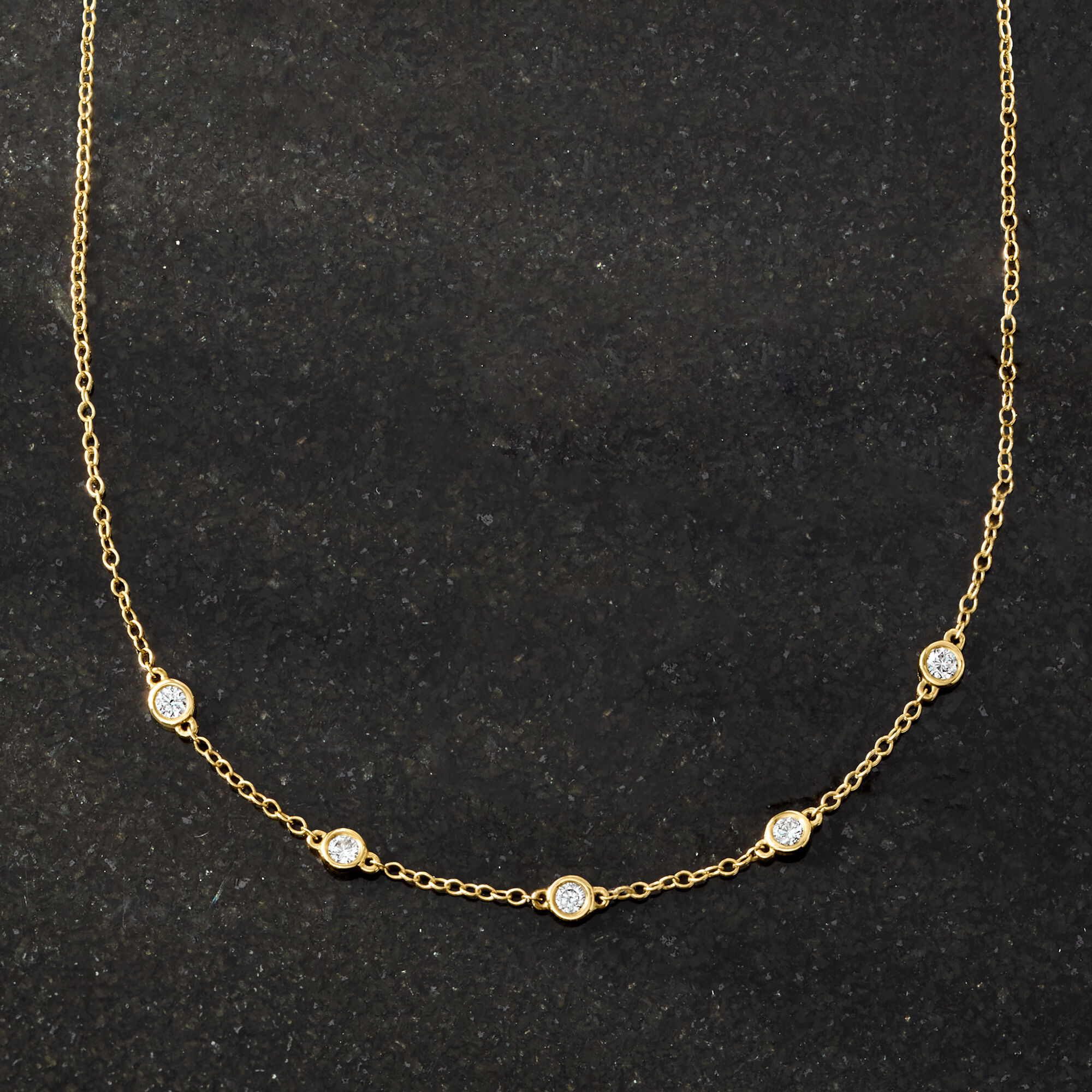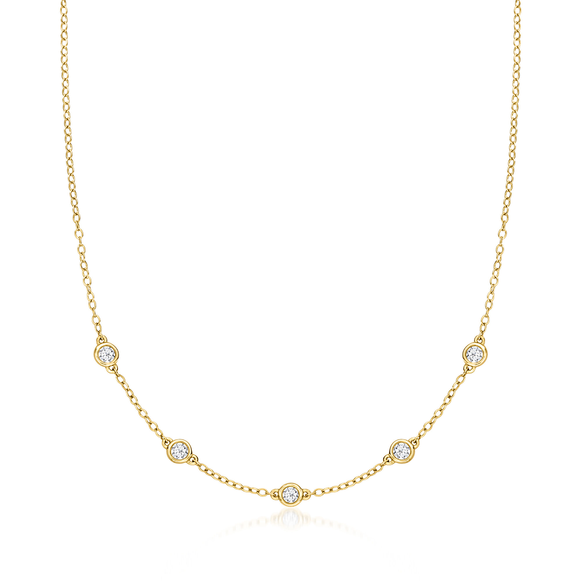 .25 ct. t.w. Bezel-Set Lab-Grown Diamond Station Necklace in 14kt Yellow Gold. 16″