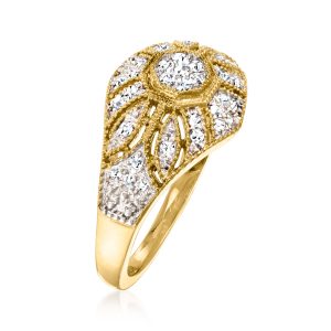 .25 ct. t.w. Diamond Floral Milgrain Vintage-Inspired Ring in 18kt Gold Over Sterling