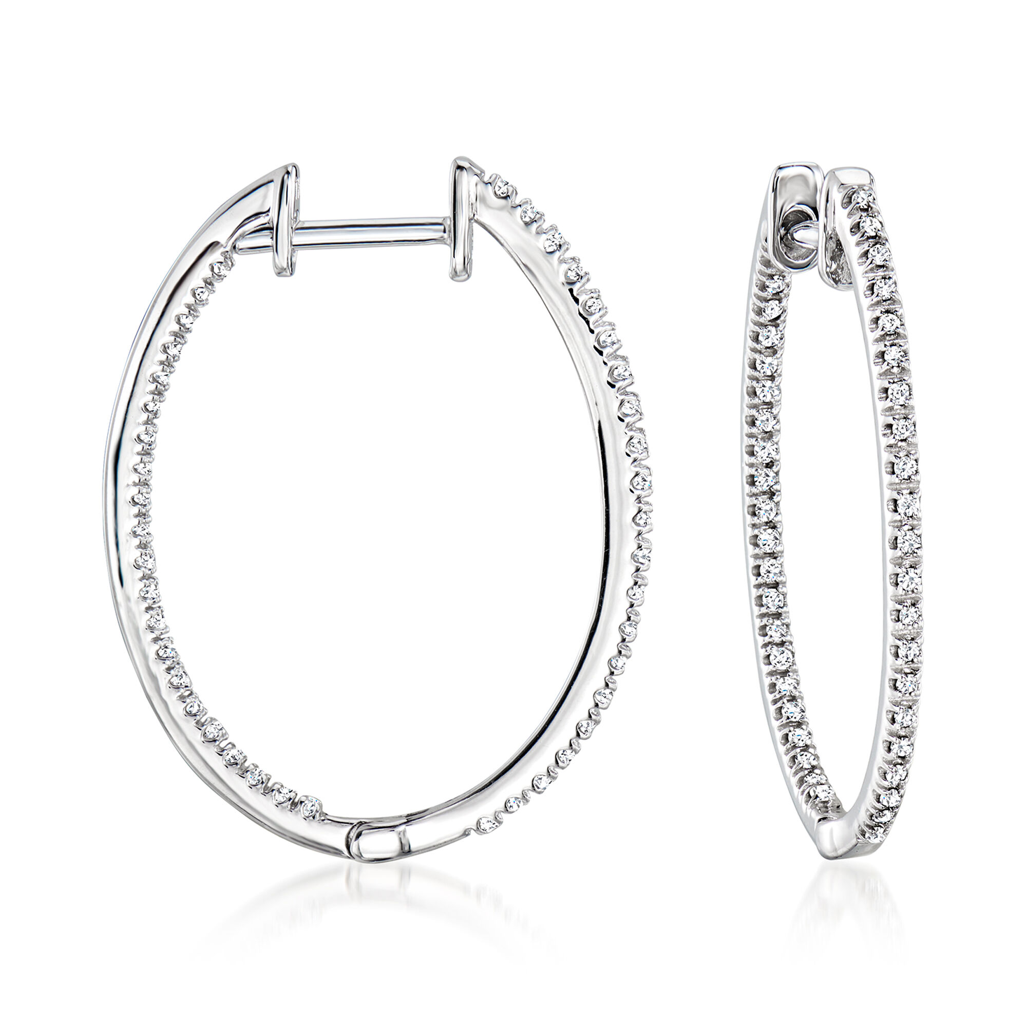 .25 ct. t.w. Diamond Inside-Outside Hoop Earrings in Sterling Silver. 1″
