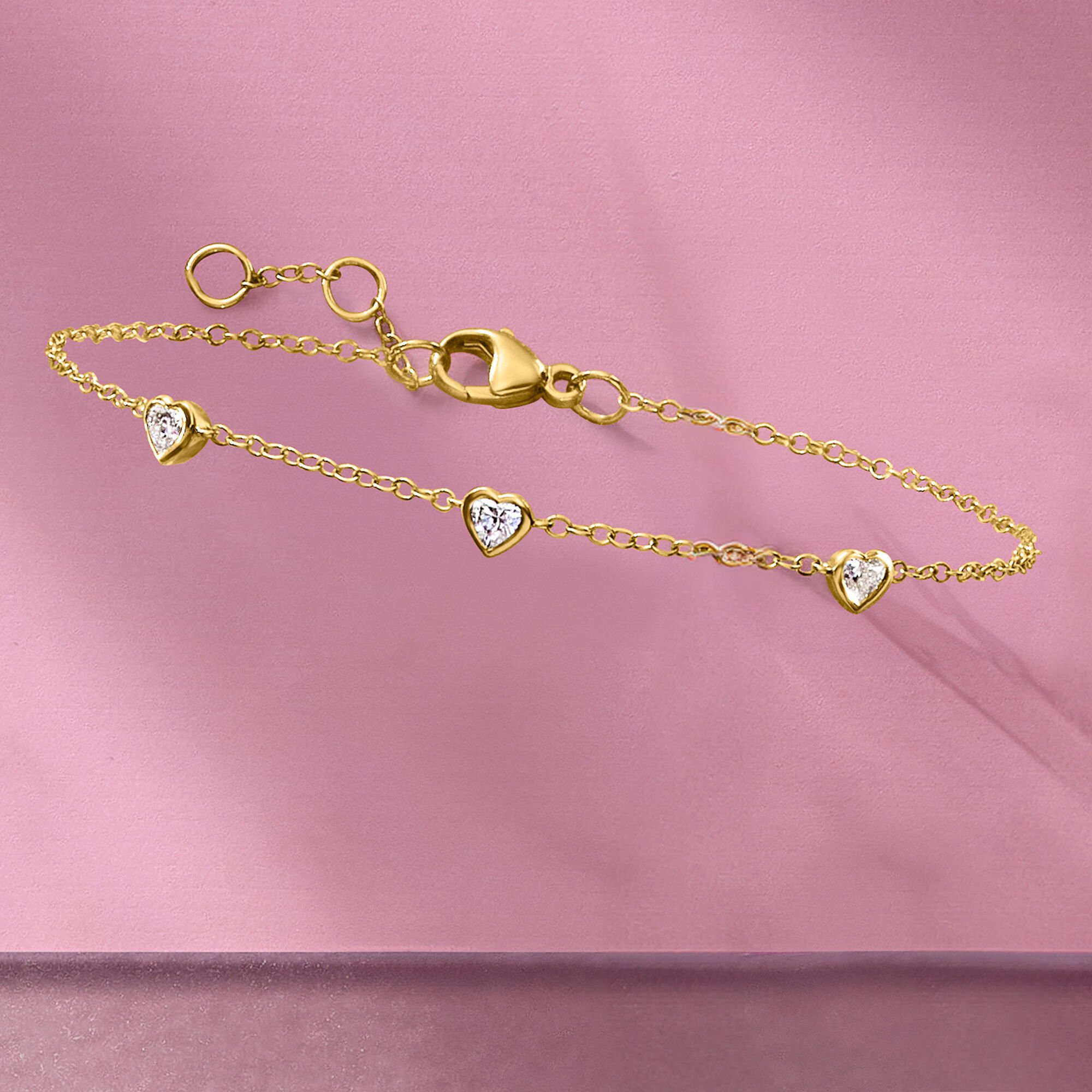 .25 ct. t.w. Heart-Shaped Lab-Grown Diamond Station Bracelet in 14kt Yellow Gold