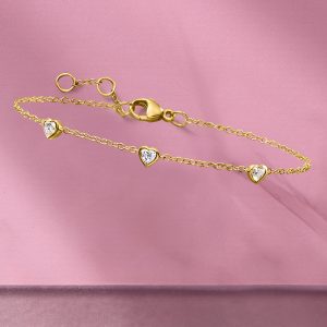 .25 ct. t.w. Heart-Shaped Lab-Grown Diamond Station Bracelet in 14kt Yellow Gold