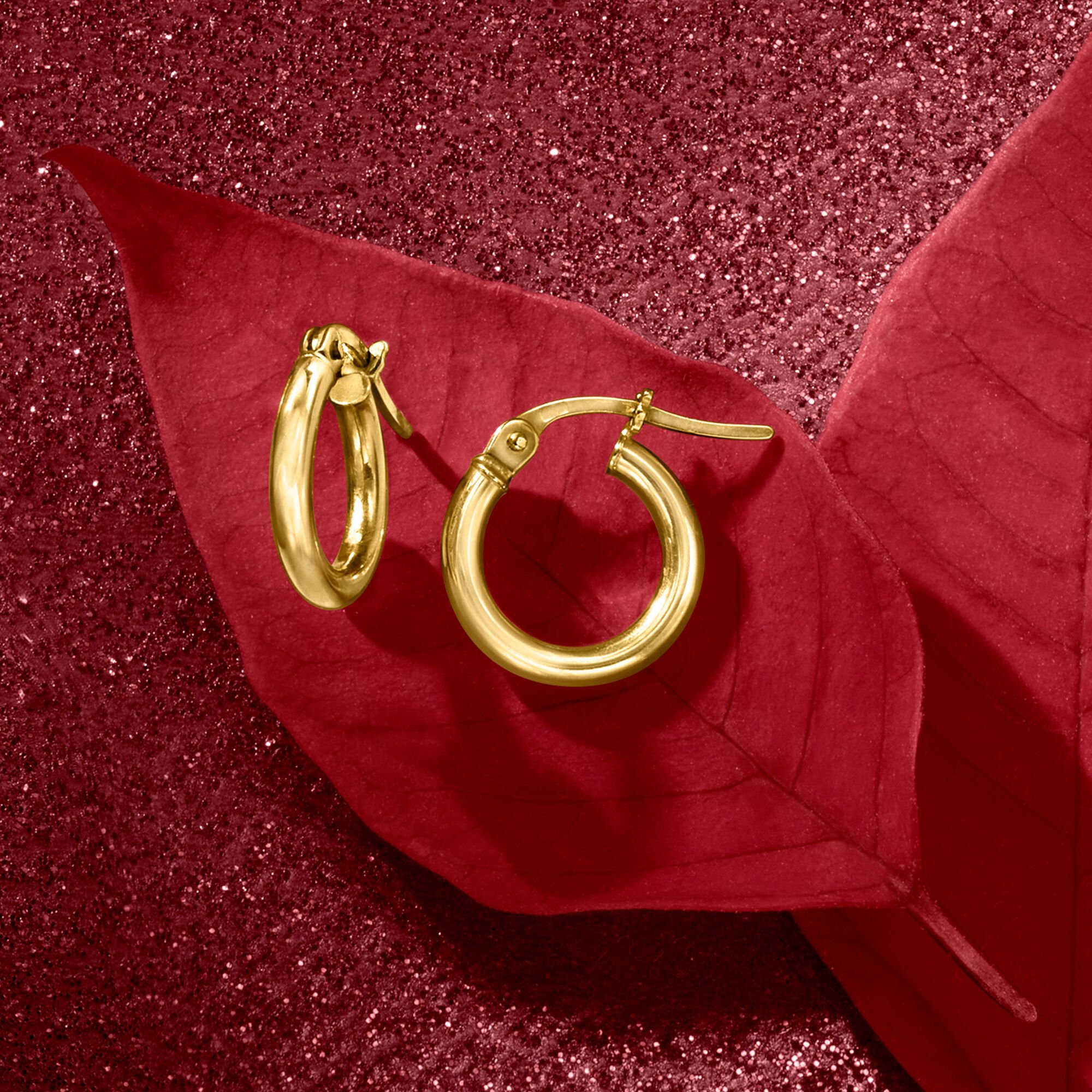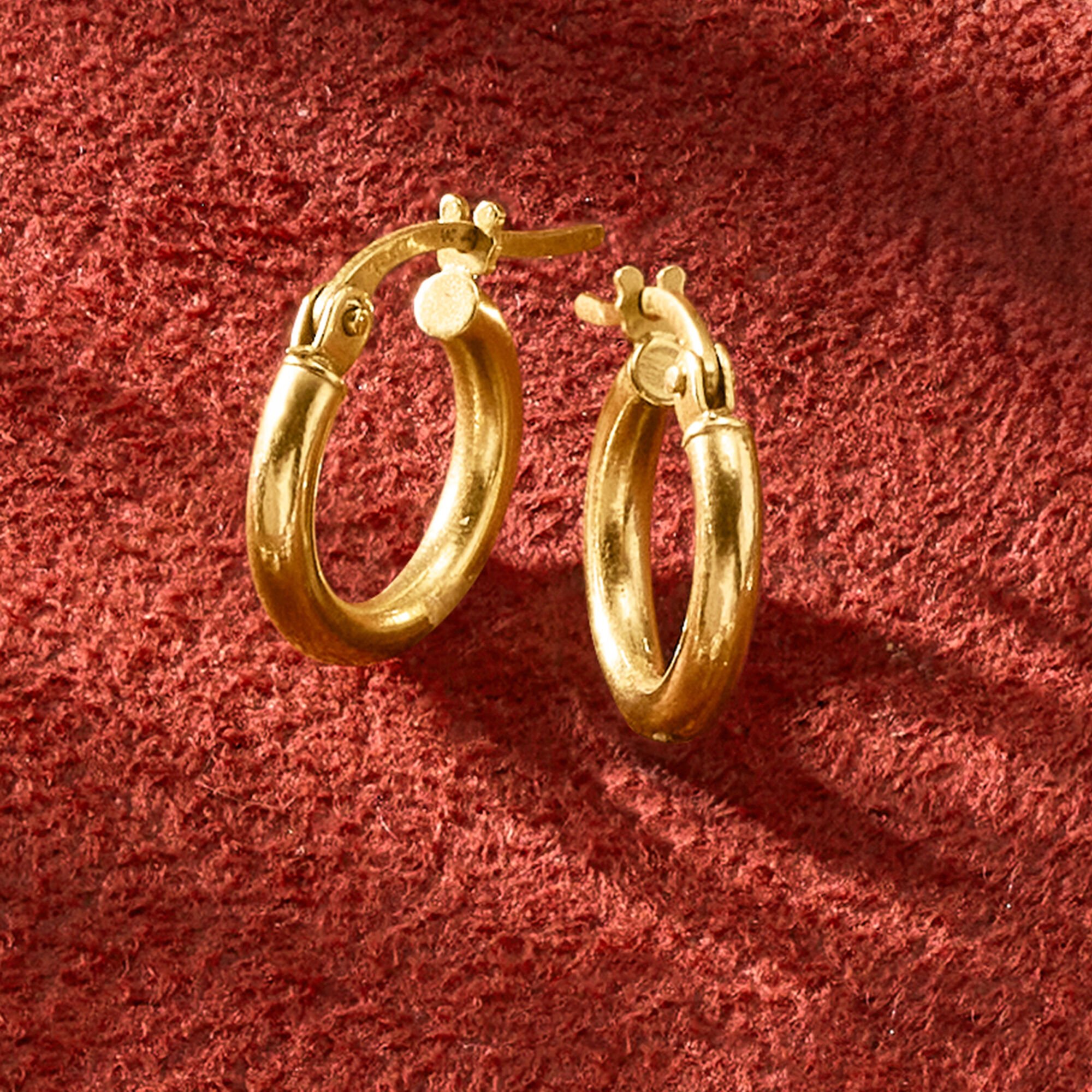 2mm 14kt Yellow Gold Small Hoop Earrings. 1/2″