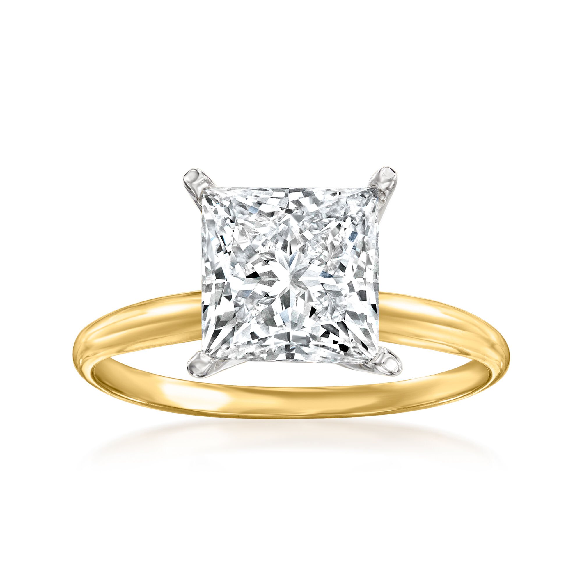 3.00 Carat Princess-Cut Lab-Grown Diamond Solitaire Ring in 14kt Yellow Gold