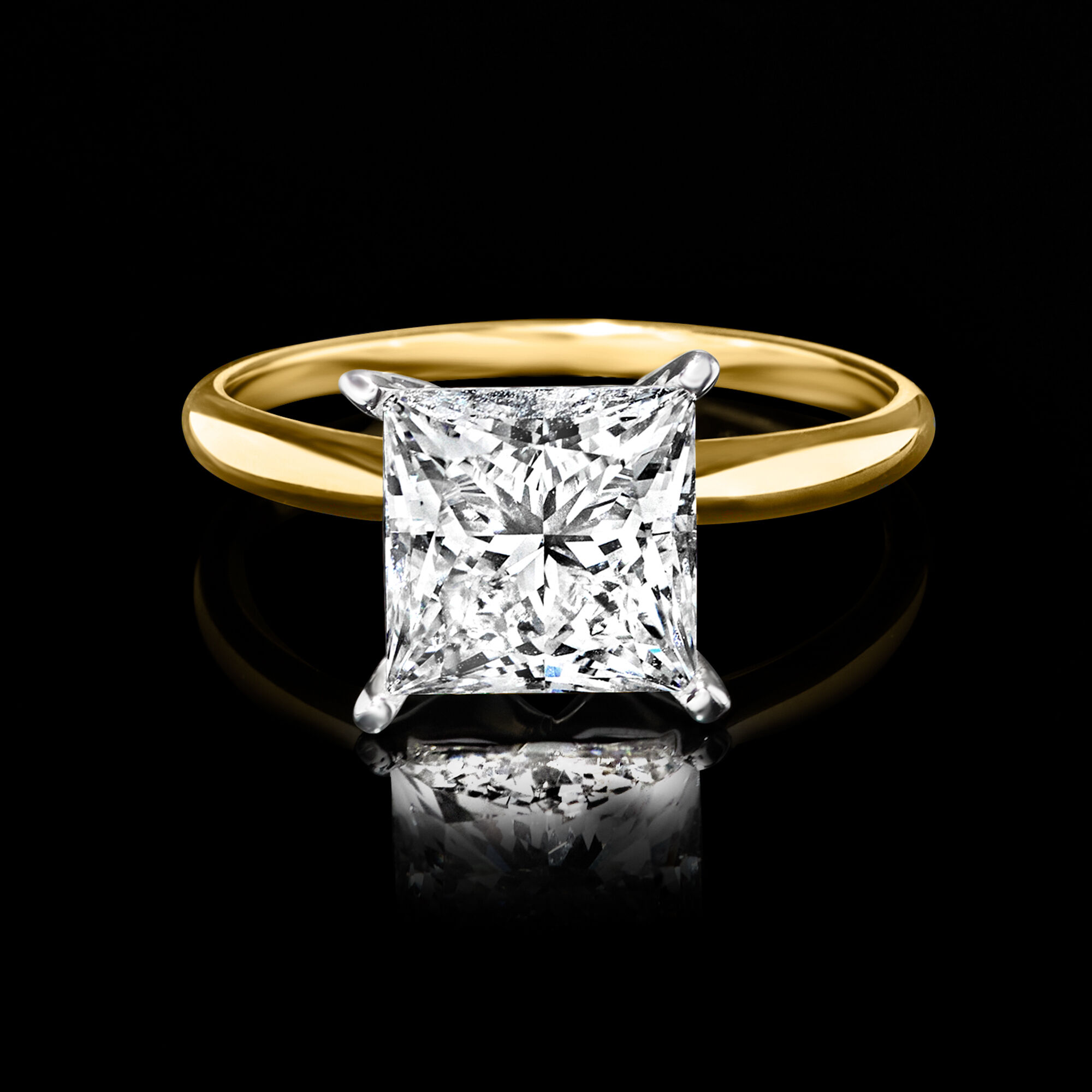3.00 Carat Princess-Cut Lab-Grown Diamond Solitaire Ring in 14kt Yellow Gold