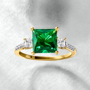 3.00 Carat Simulated Emerald and .38 ct. t.w. CZ Ring in 18kt Gold Over Sterling