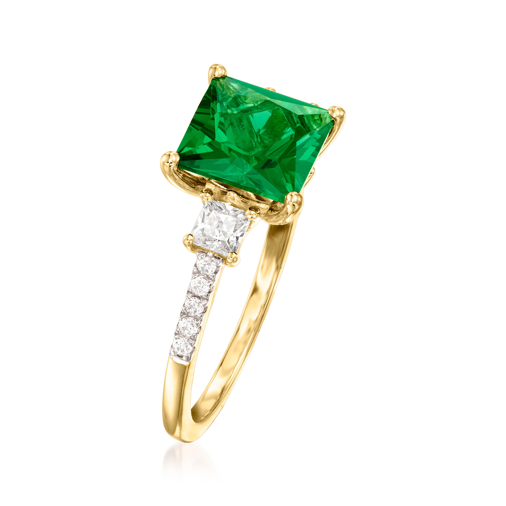 3.00 Carat Simulated Emerald and .38 ct. t.w. CZ Ring in 18kt Gold Over Sterling