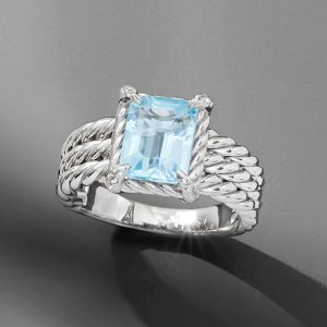 3.00 Carat Sky Blue Topaz Ring with White Topaz in Sterling Silver