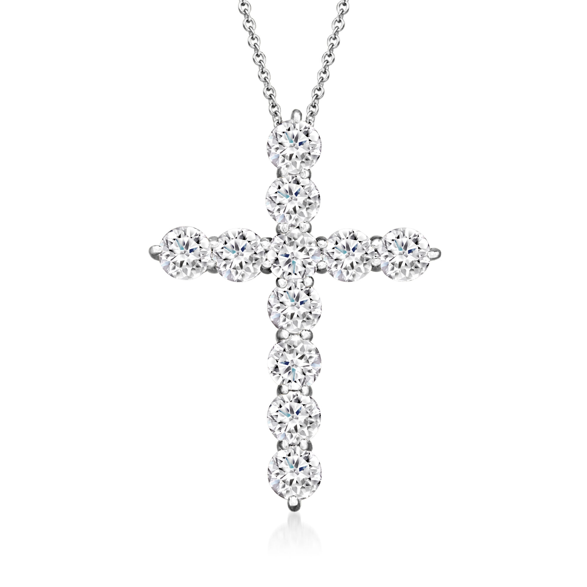 3.00 ct. t.w. Lab-Grown Diamond Cross Pendant Necklace in 14kt White Gold