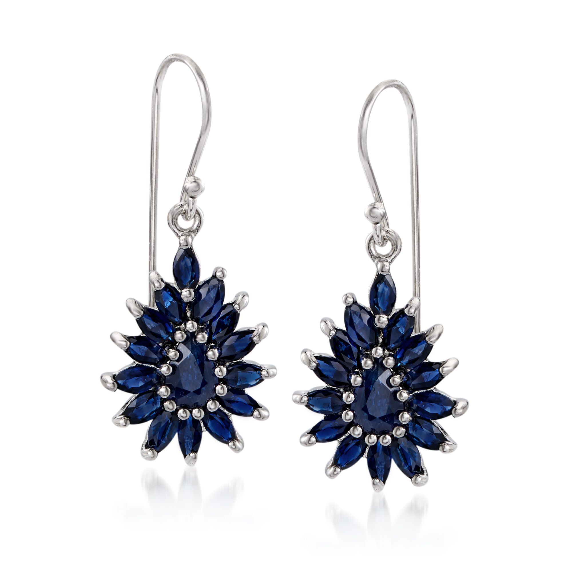 3.00 ct. t.w. Sapphire Cluster Drop Earrings in Sterling Silver
