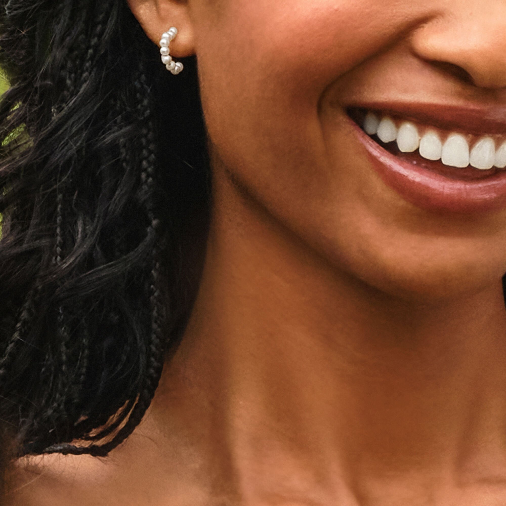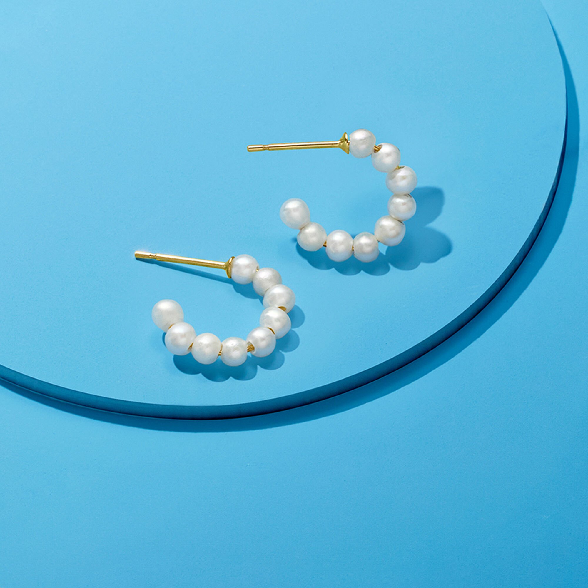 3-3.5mm Cultured Pearl C-Hoop Earrings in 14kt Yellow Gold. 1/2″