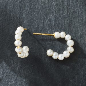 3-3.5mm Cultured Pearl C-Hoop Earrings in 14kt Yellow Gold. 1/2″