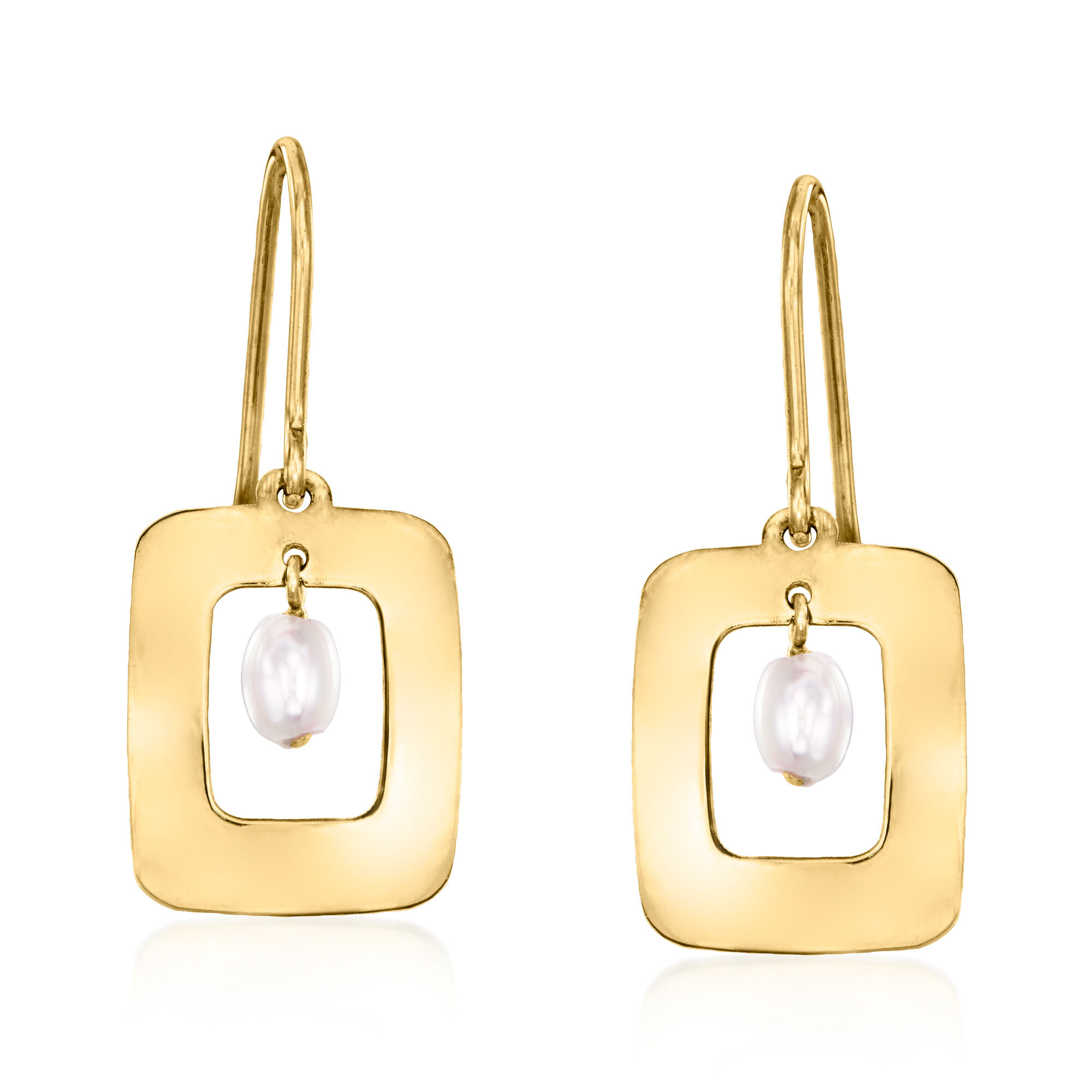 3-3.5mm Cultured Pearl Geometric Drop Earrings in 10kt Yellow Gold