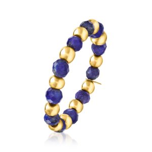 3-3.5mm Lapis Bead Stretch Ring with 14kt Yellow Gold