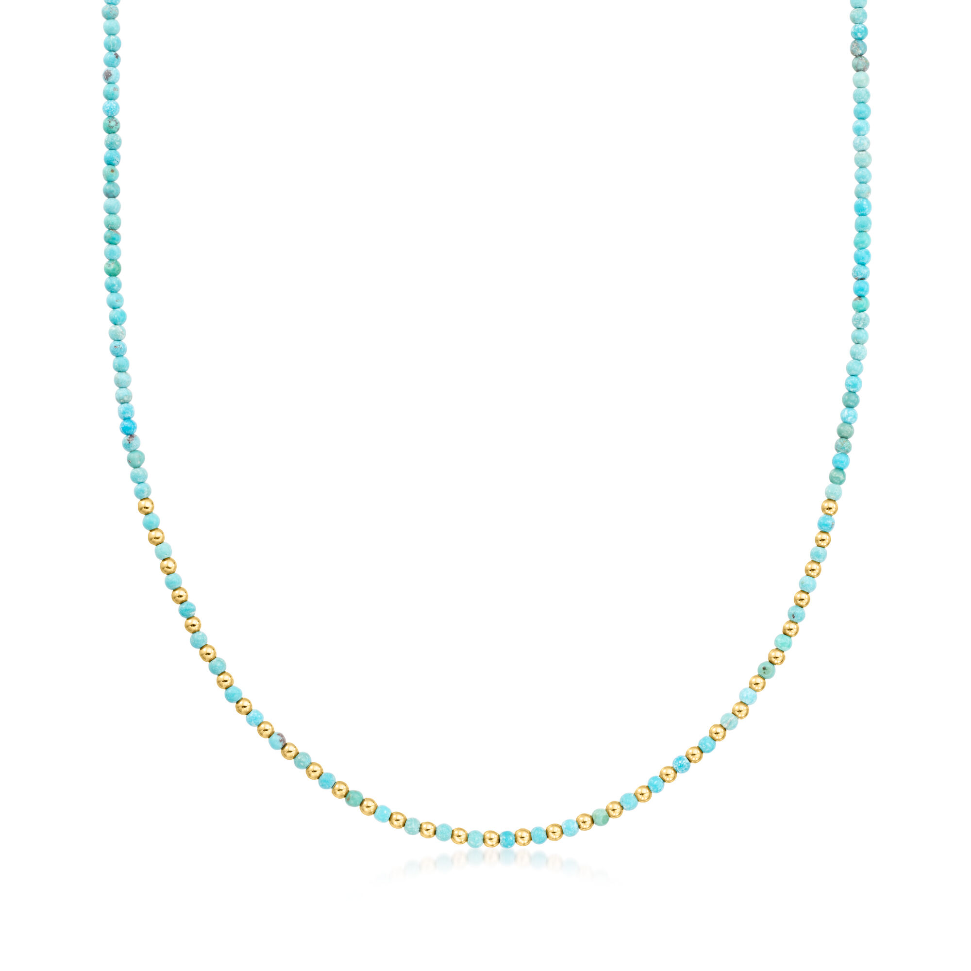 3-3.5mm Turquoise and 10kt Yellow Gold Bead Necklace