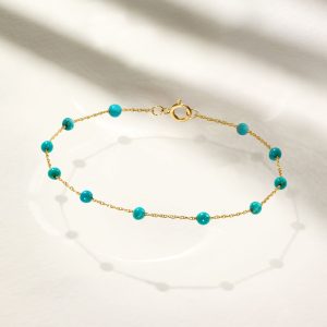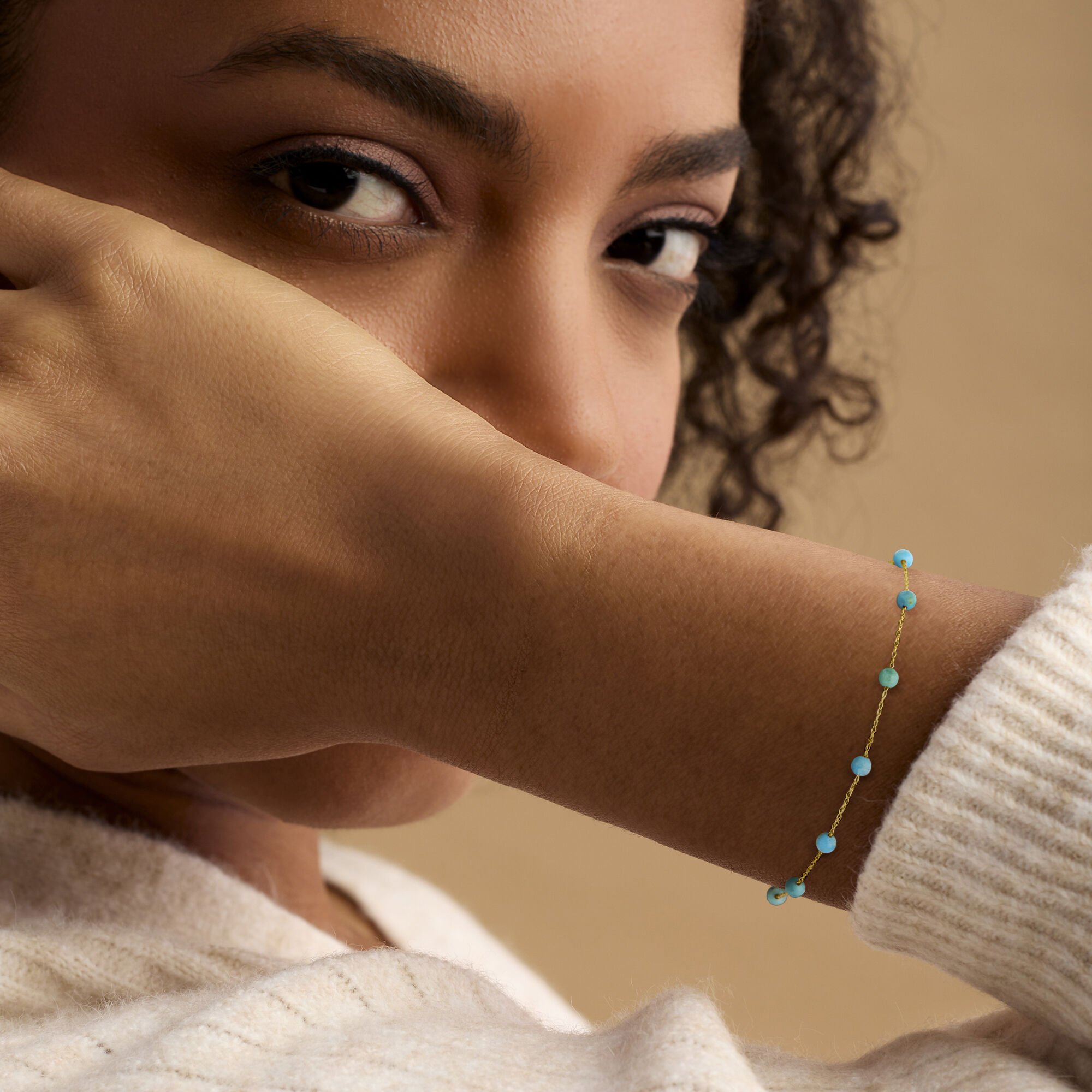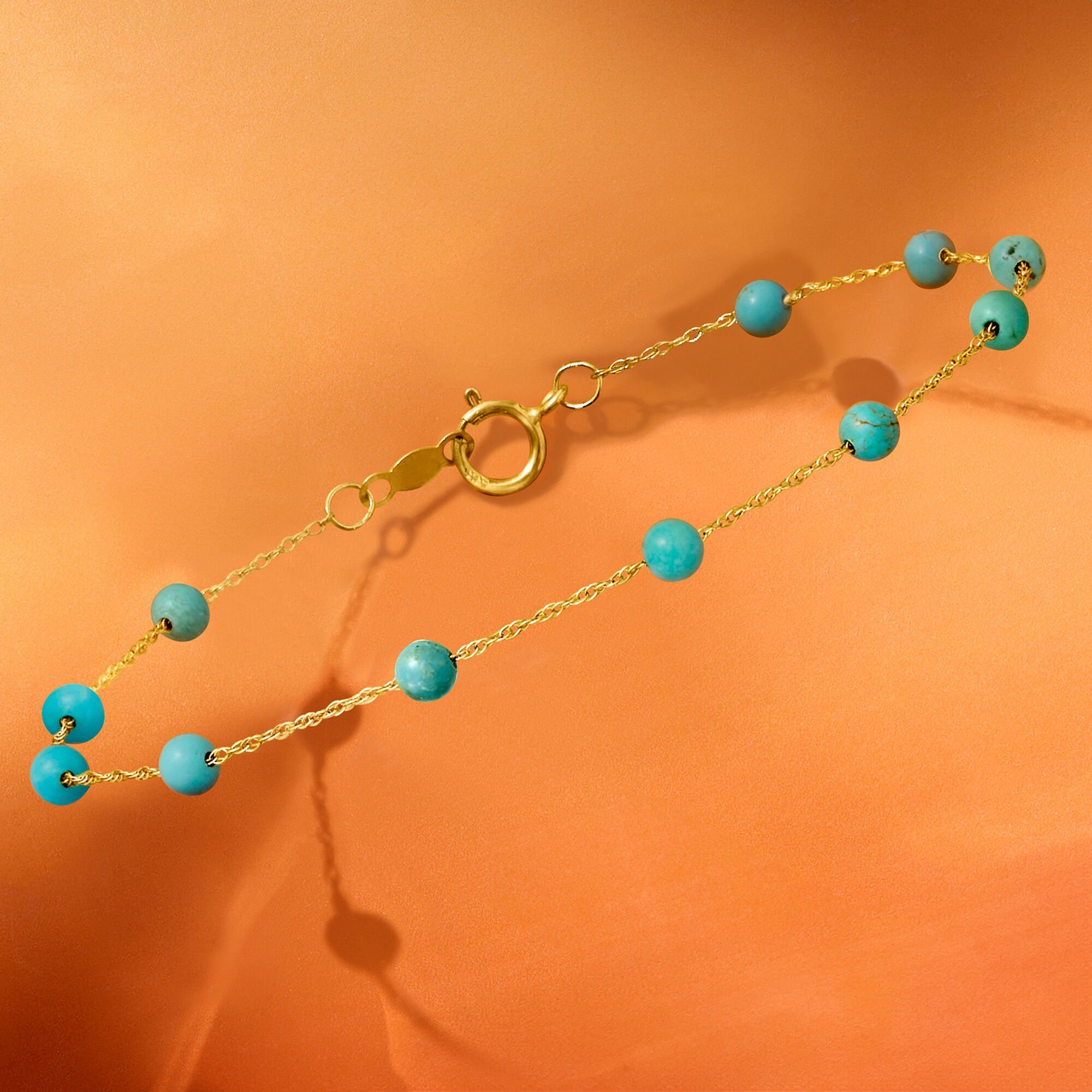 3-3.5mm Turquoise Bead Station Bracelet in 14kt Yellow Gold
