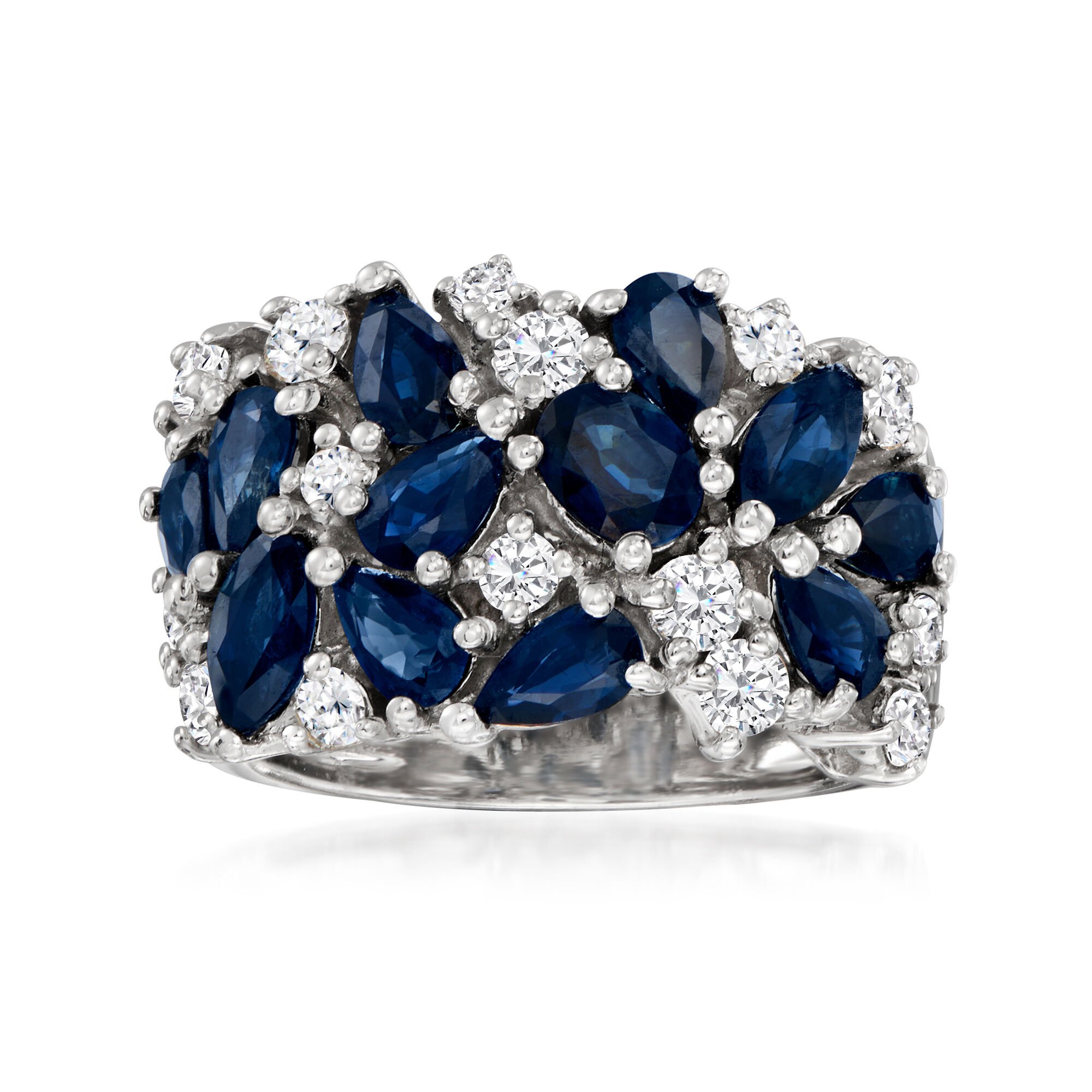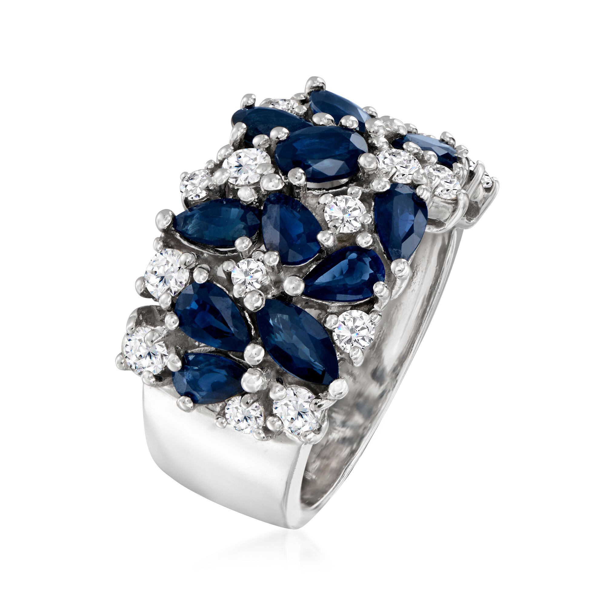 3.30 ct. t.w. Sapphire and .87 ct. t.w. Diamond Ring in 14kt White Gold