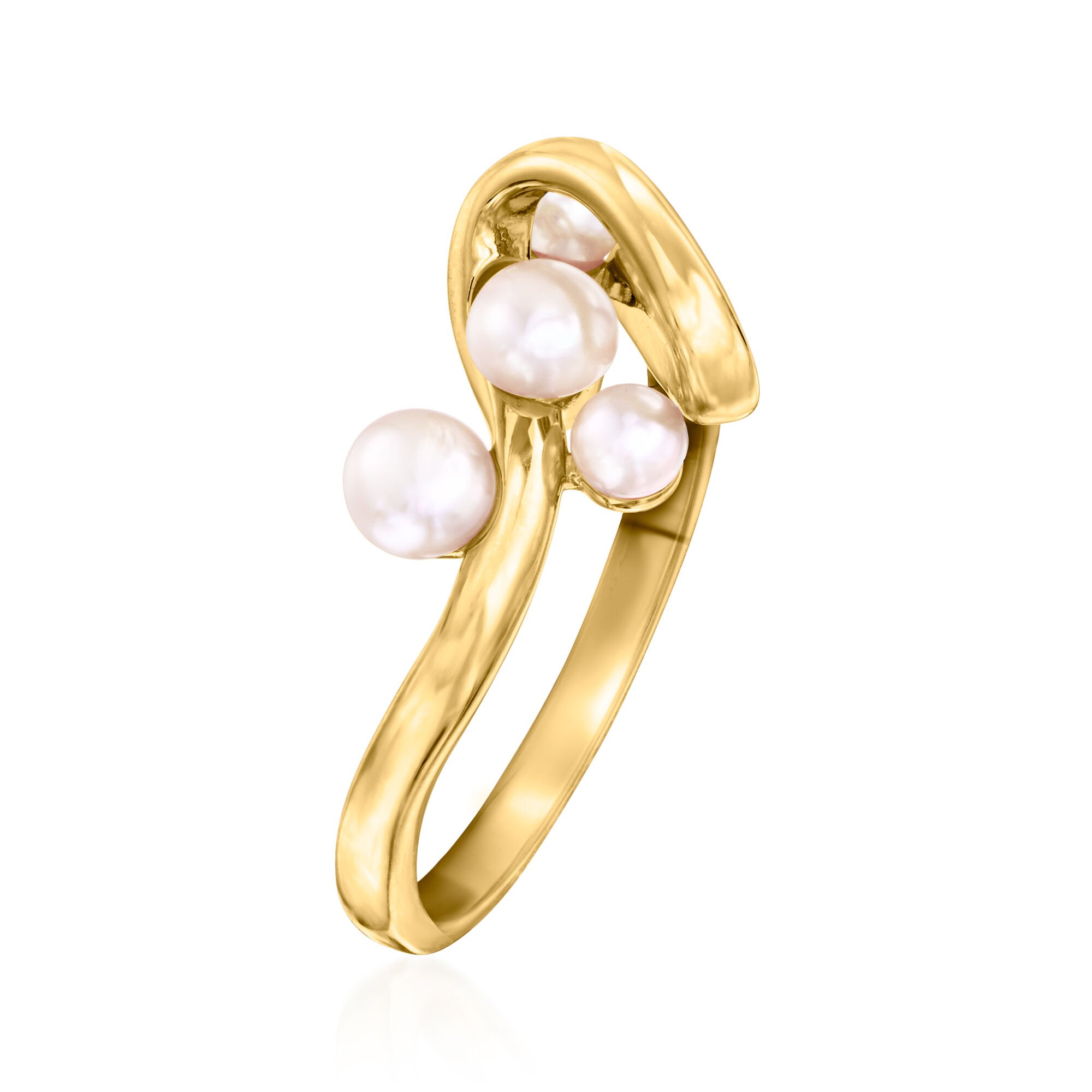 3-4.5mm Cultured Pearl Swirl Ring in 18kt Gold Over Sterling